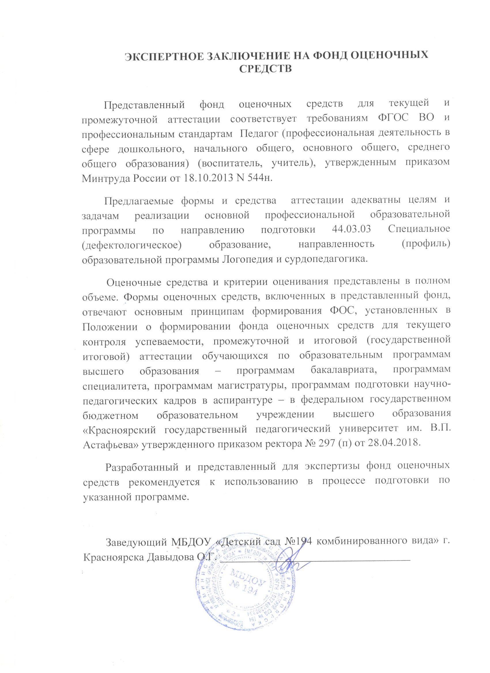 Экспертное заключение