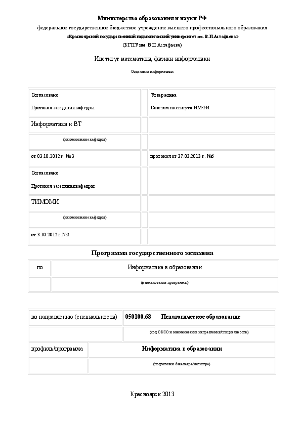 - Программа государственного экзамена (магистерская программа «Информатика в образовании»)