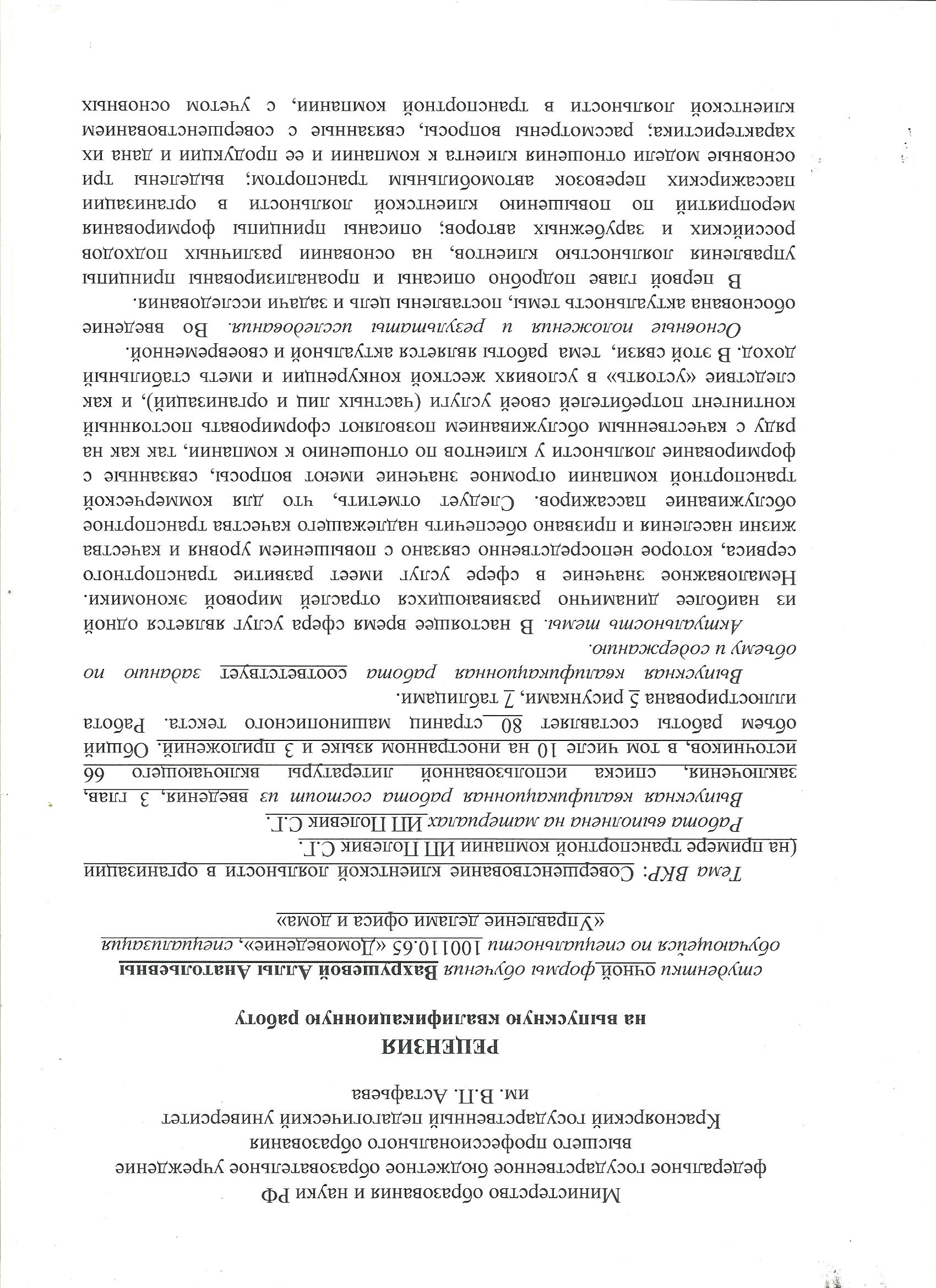 ВКР. Вахрушева А.Ан. "Совершенствование клиентской лояльности в организации (на примере транспортной компании ИП Полевик С.Г.)"