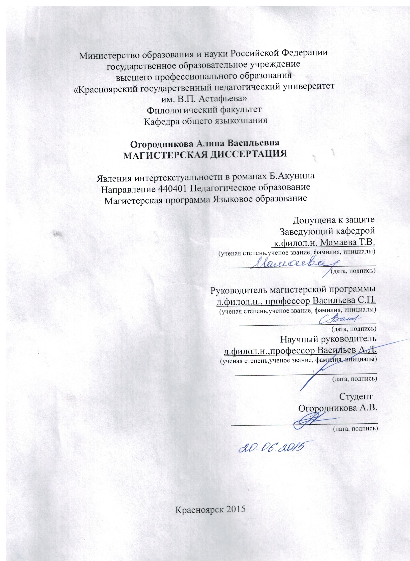 А.В. Огородникова "Явления интертекстуальности в романах Б. Акунина"