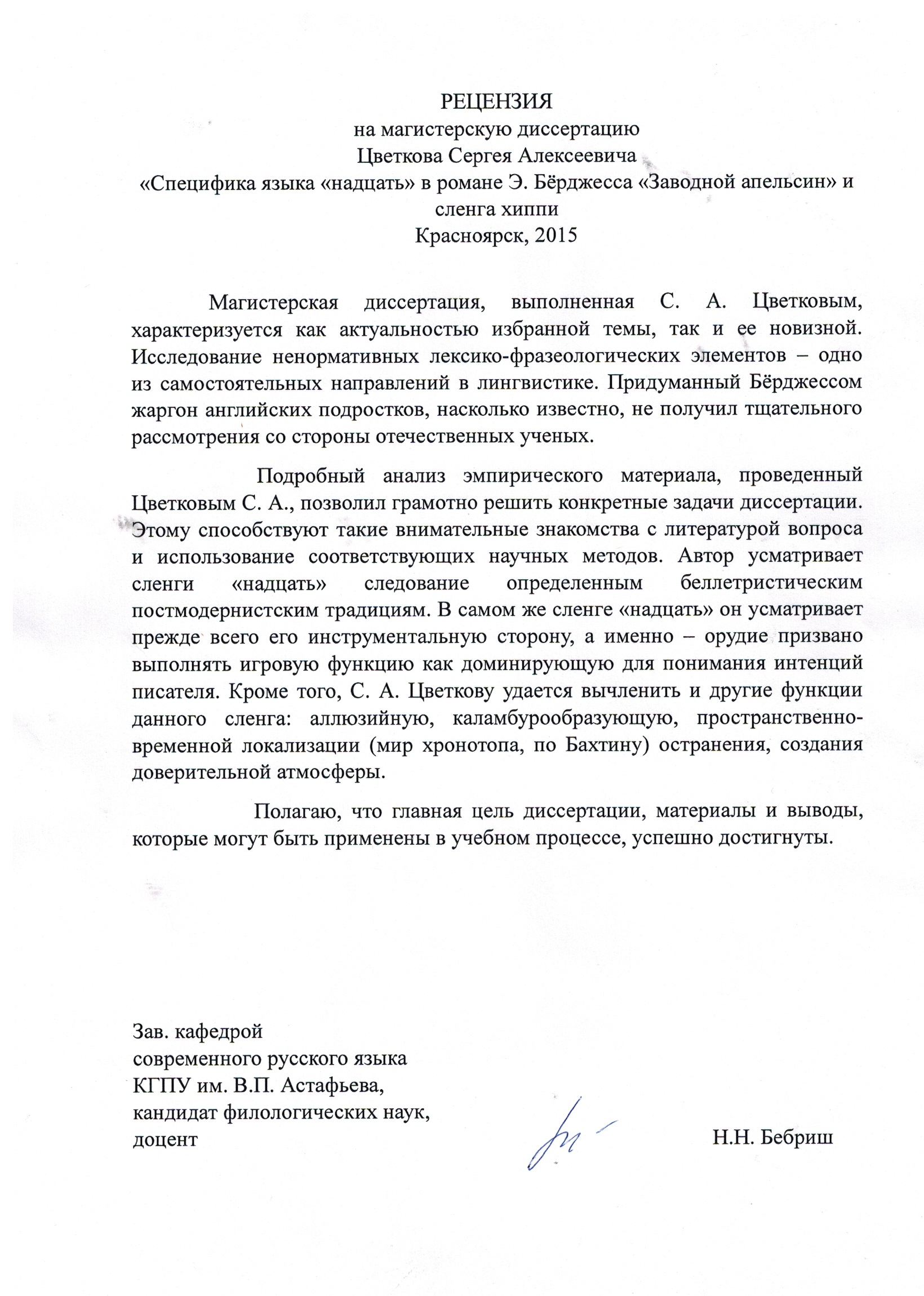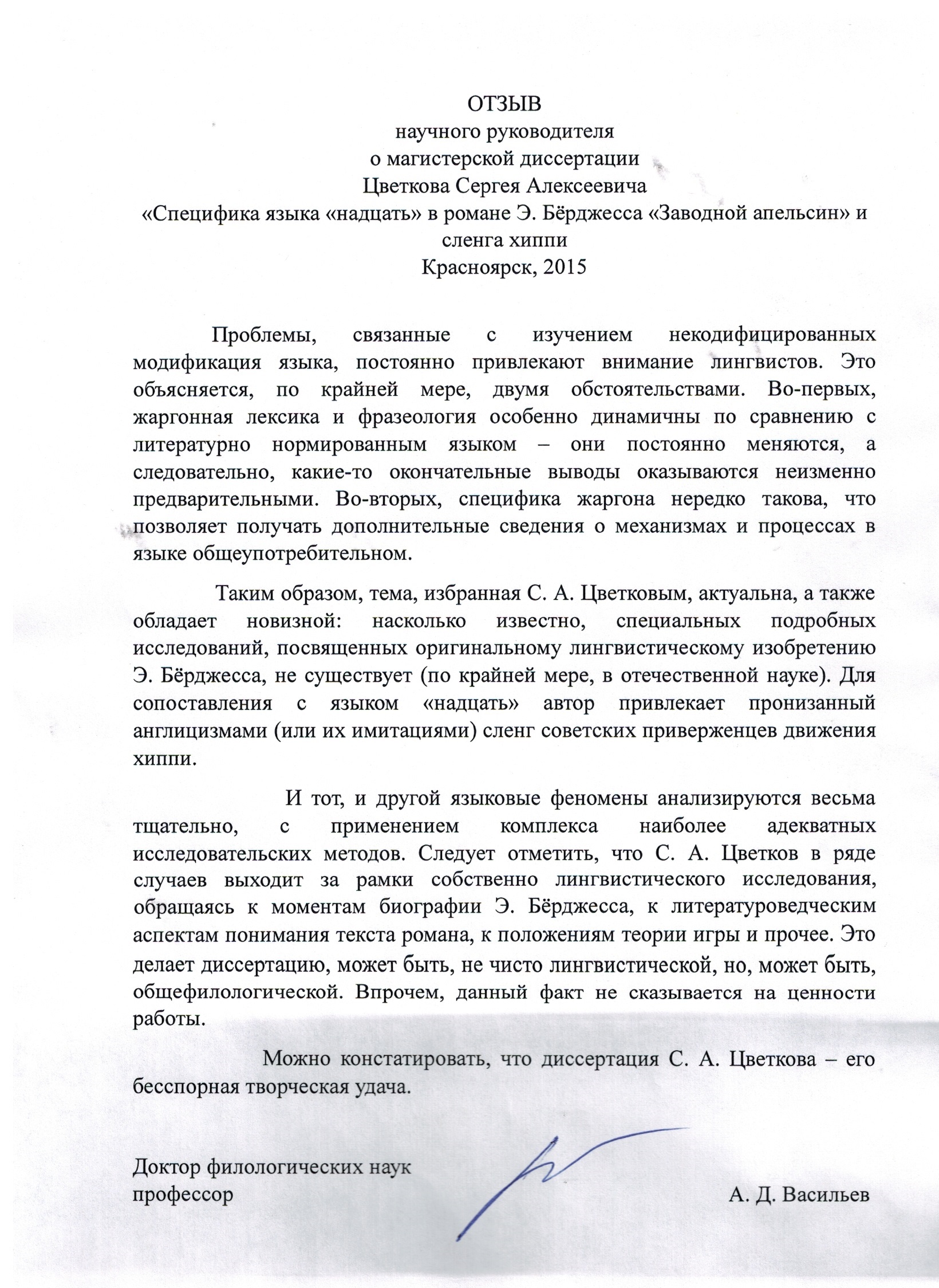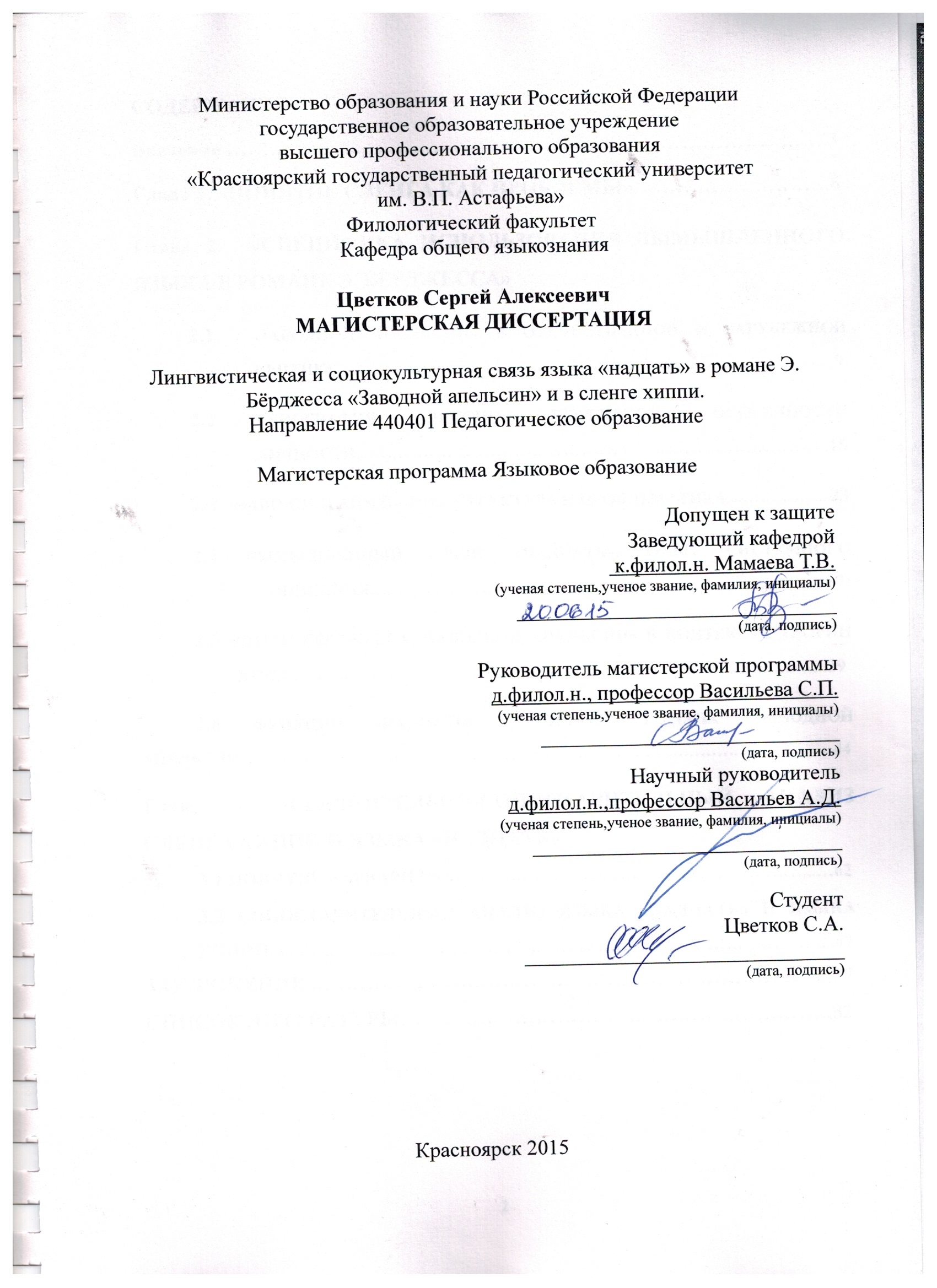 С.А. Цветков "Лингвистическая и социокультурная связь языка «надцать» в романе Э. Бёрджесса «Заводной апельсин» и в сленге хиппи"