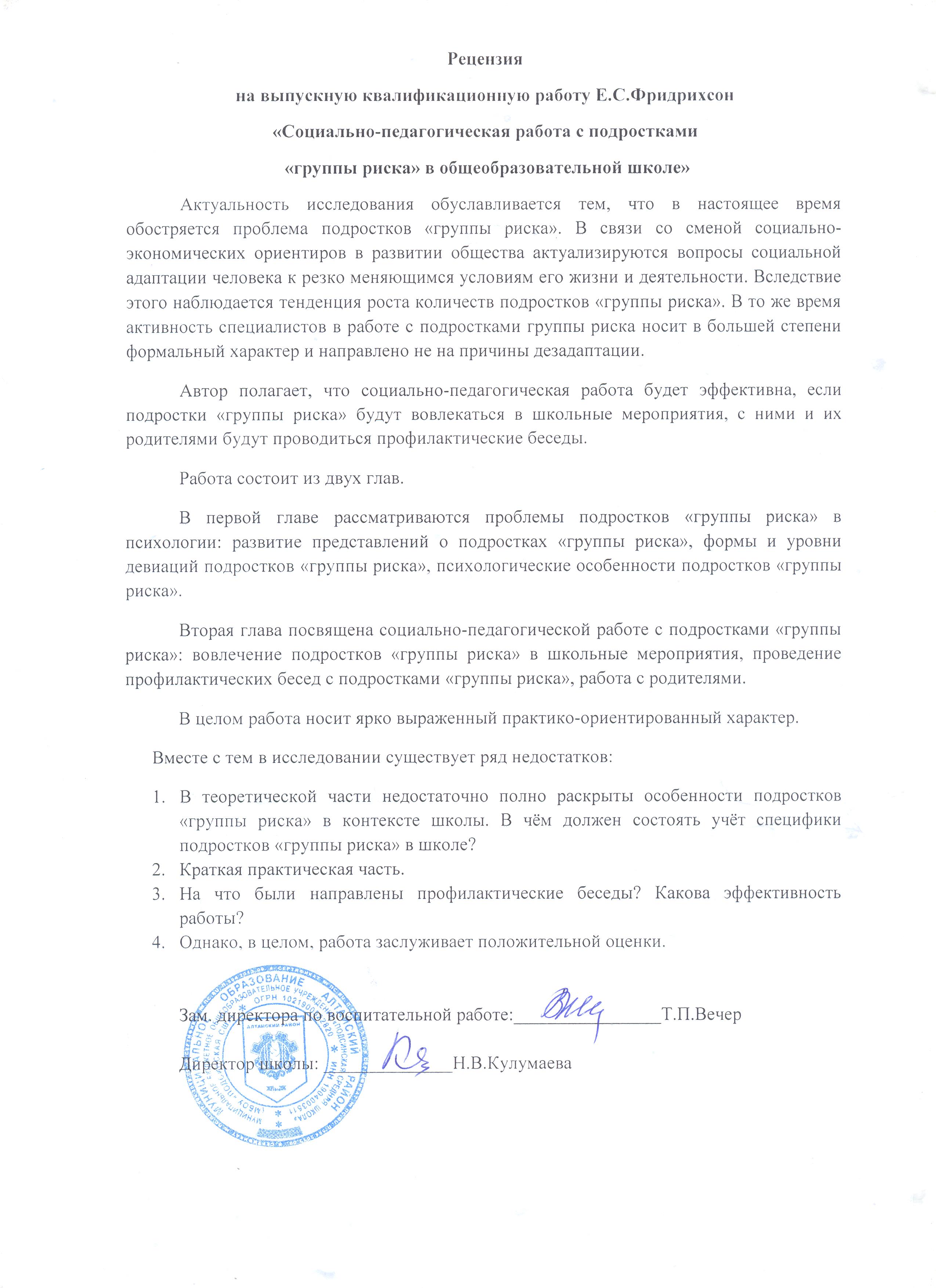 Социально — педагогическая работа с подростками группы риска в общеобразовательной школе