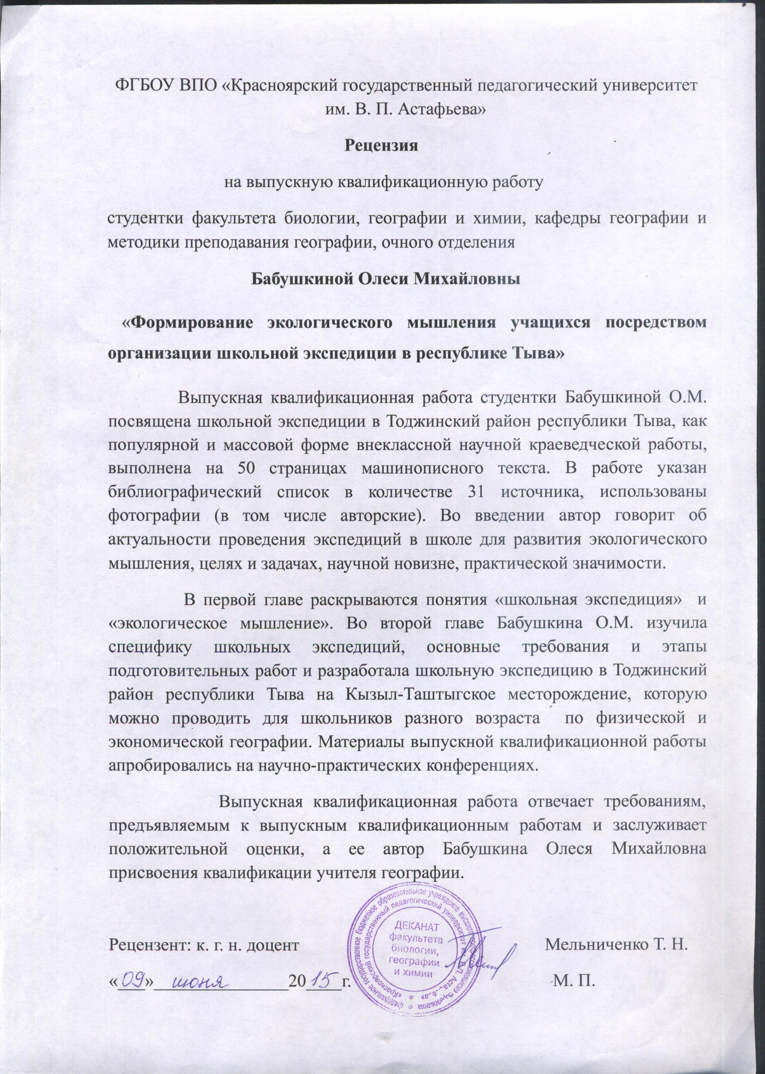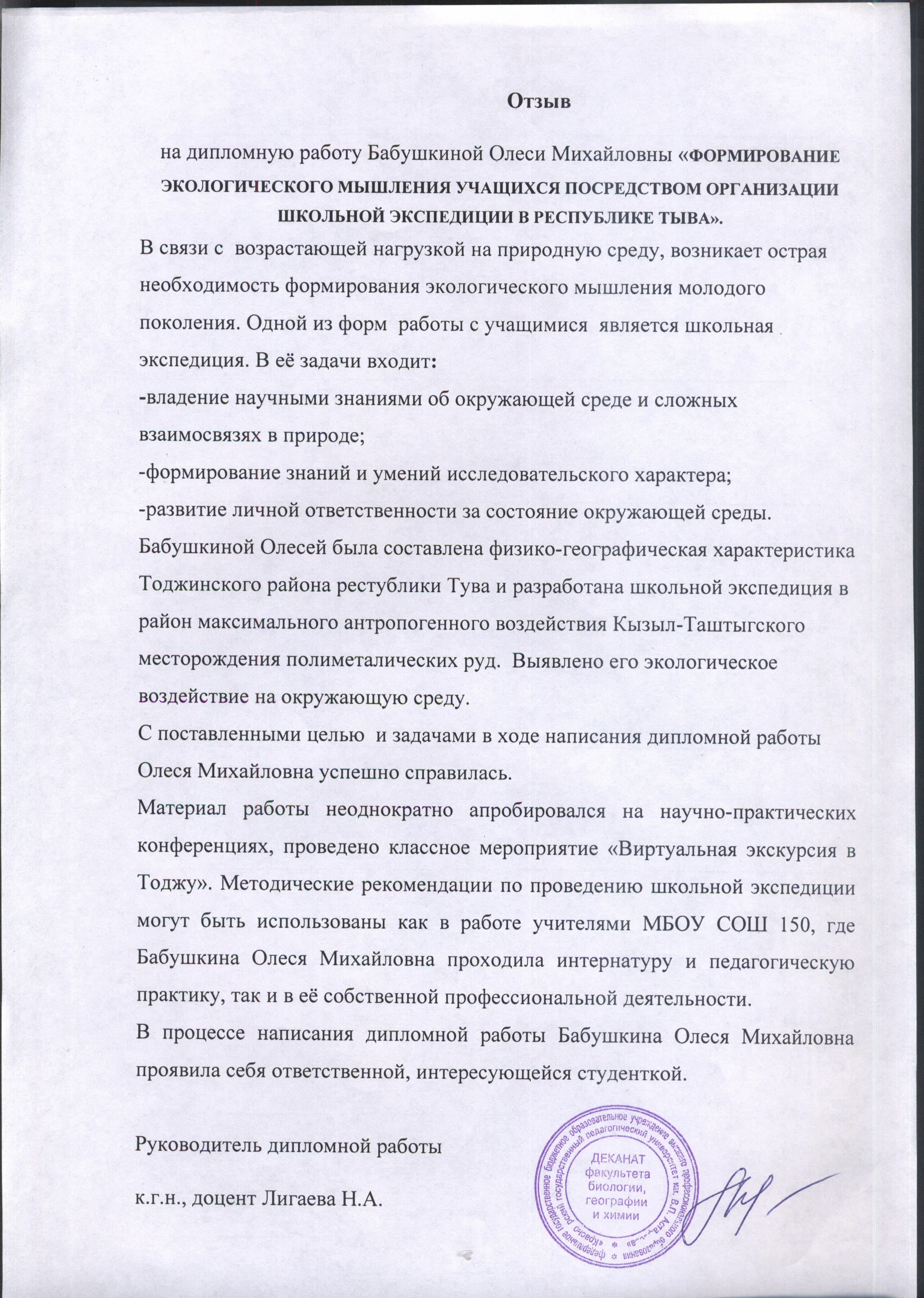 Формирование экологического мышления учащихся посредством организации школьной экспедиции в республике Тыва