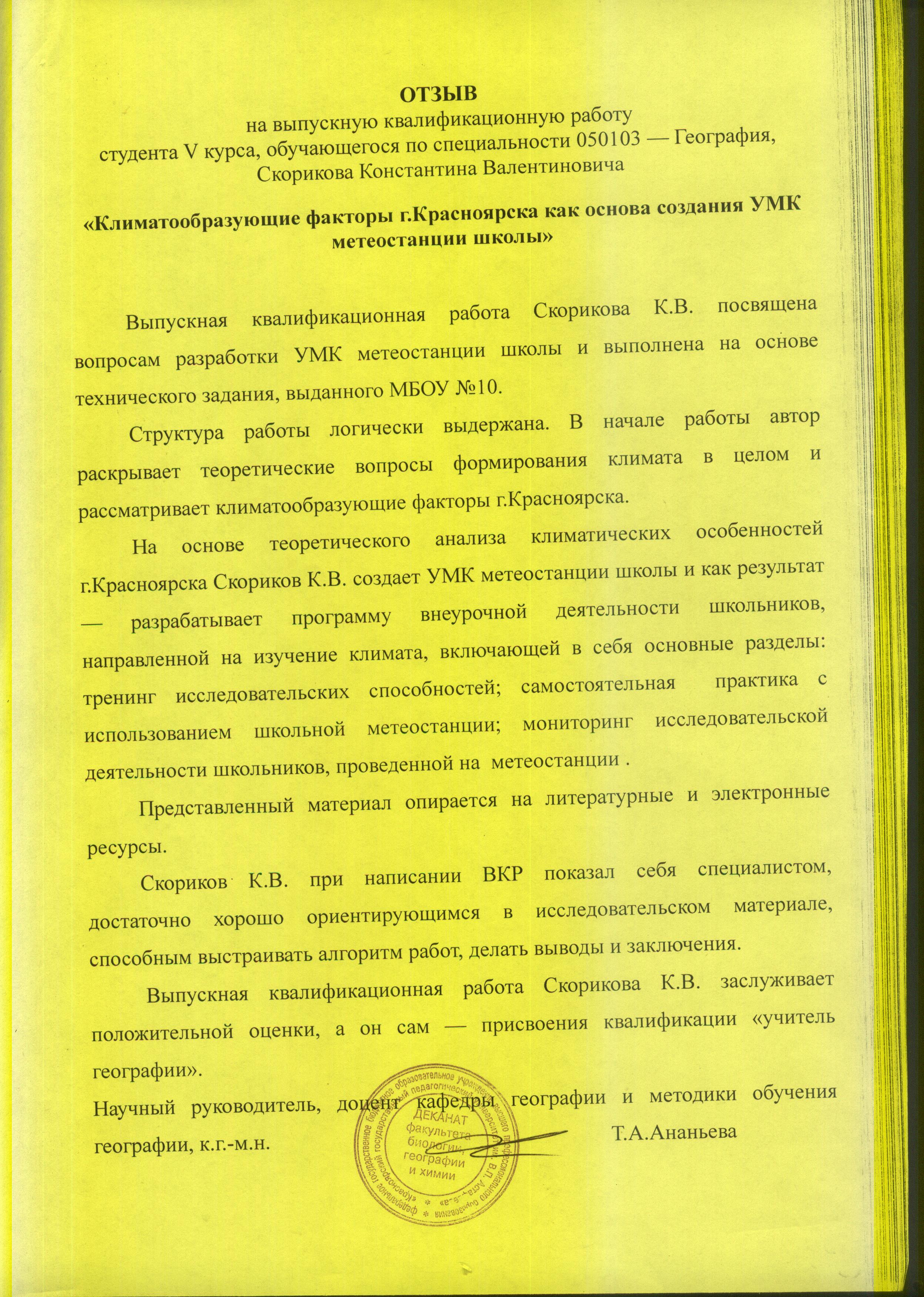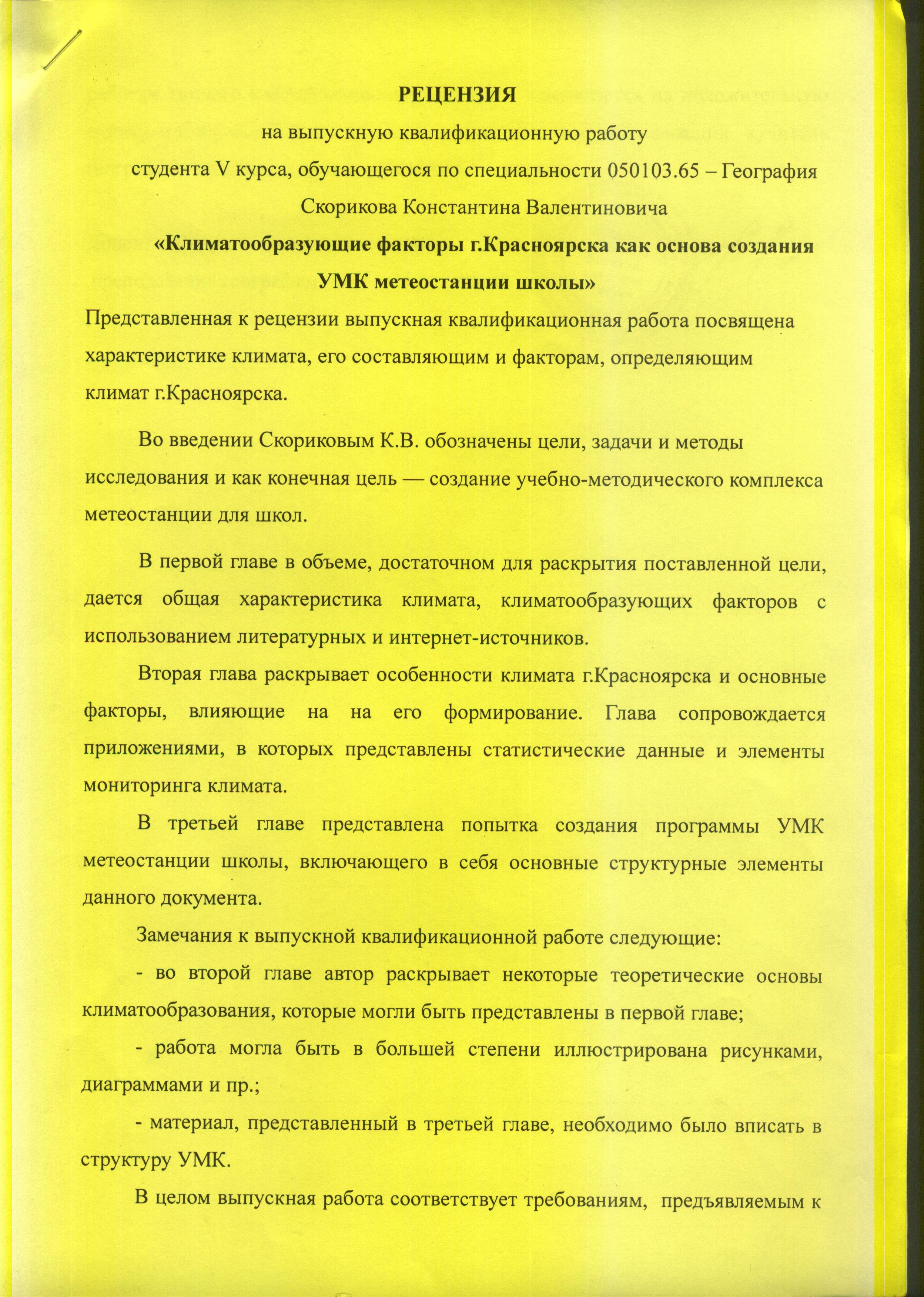Климатообразующие факторы г.Красноярска как основа создания УМК метеостанции школы