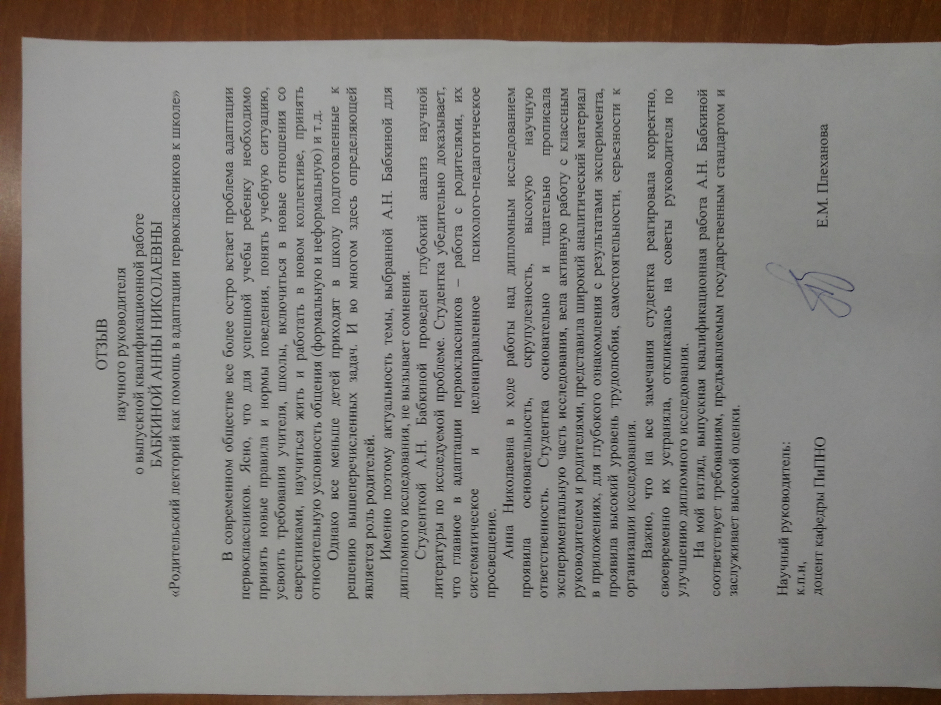 РОДИТЕЛЬСКИЙ ЛЕКТОРИЙ КАК ПОМОЩЬ В АДАПТАЦИИ ПЕРВОКЛАССНИКОВ К ШКОЛЕ
