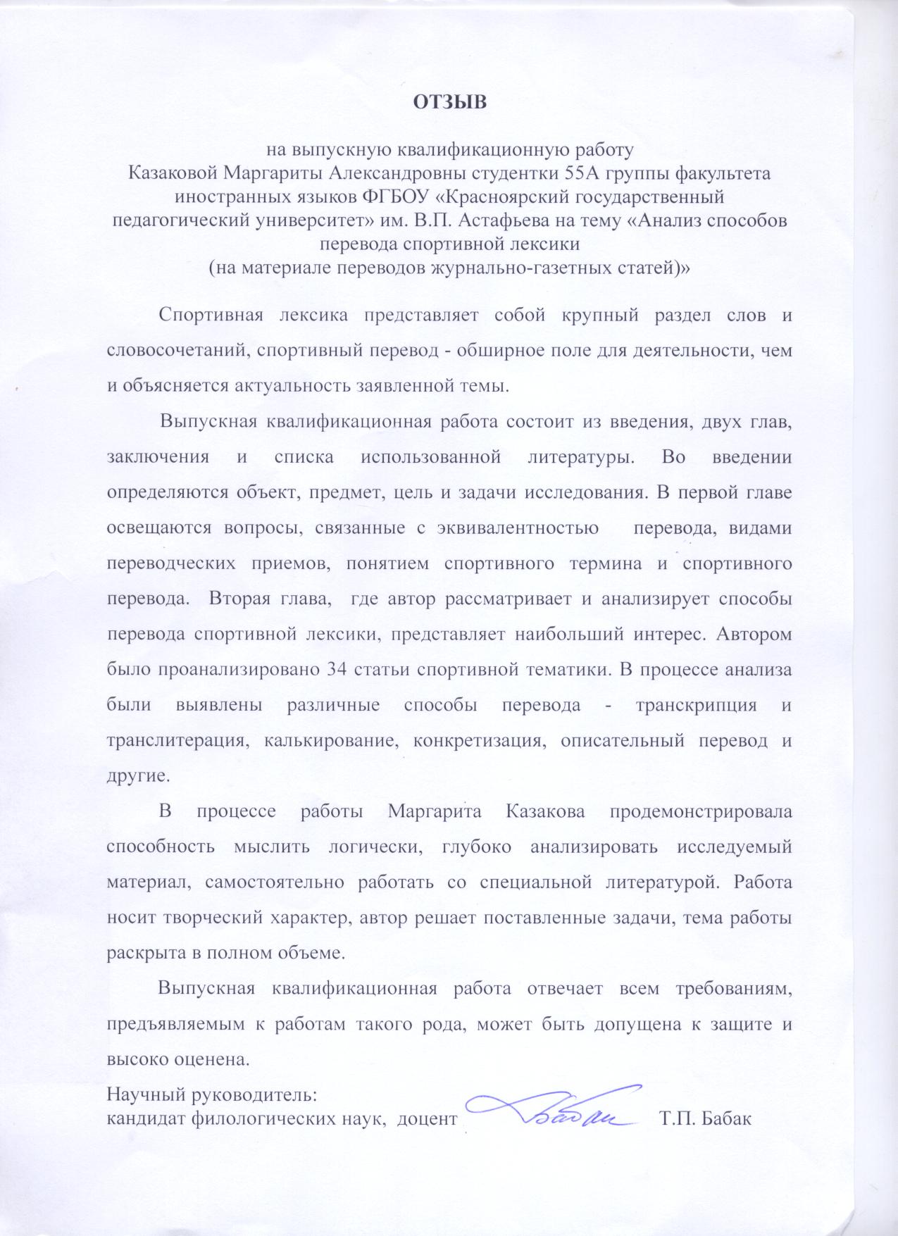 Казакова М.А. Анализ способов перевода спортивной лексики (на материале переводов газетно-журнальных ставтей)