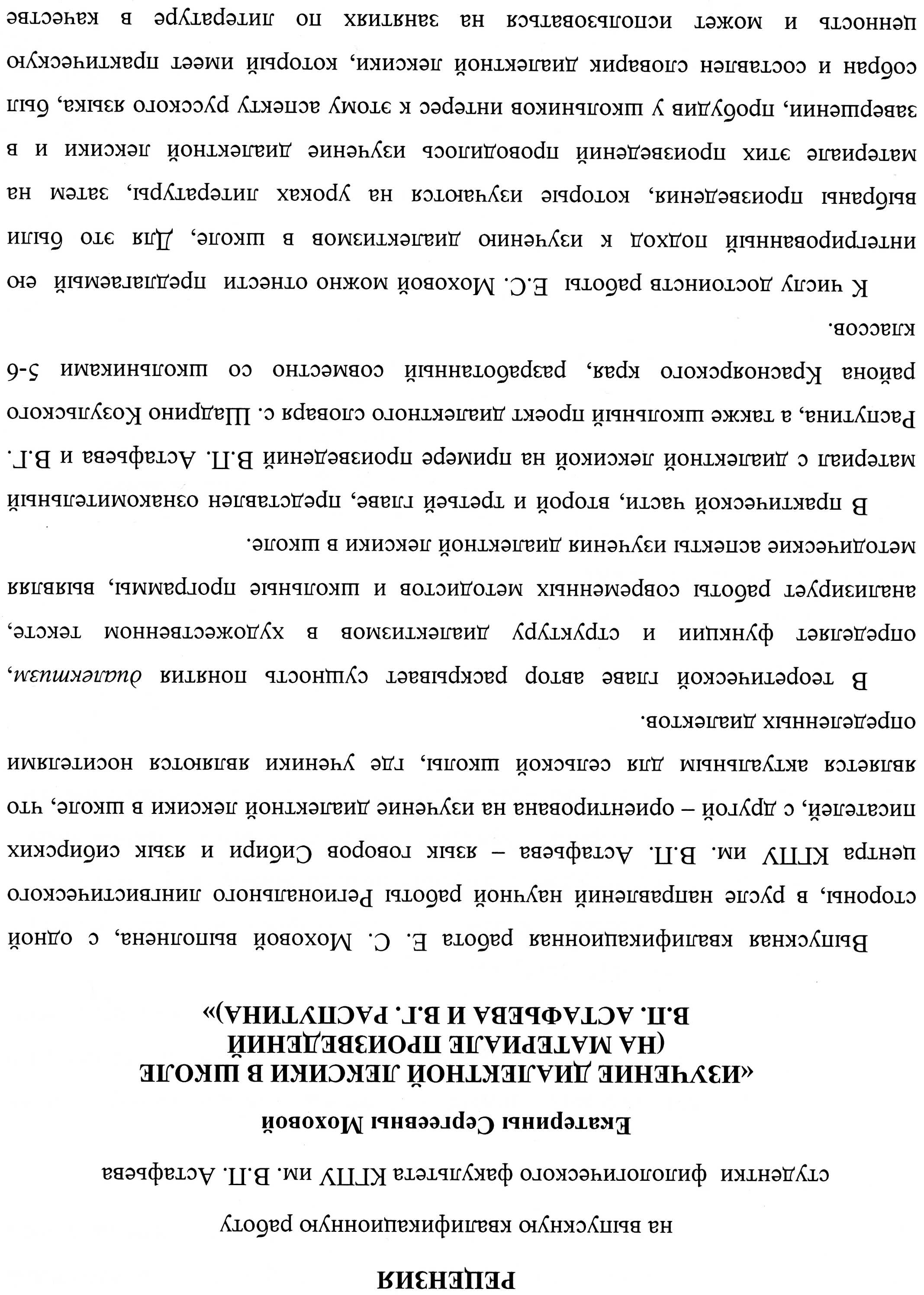 Мохова Е.С. Изучение диалектной лексики в школе (на материале произведений В.П. Астафьева и В.Г. Распутина)