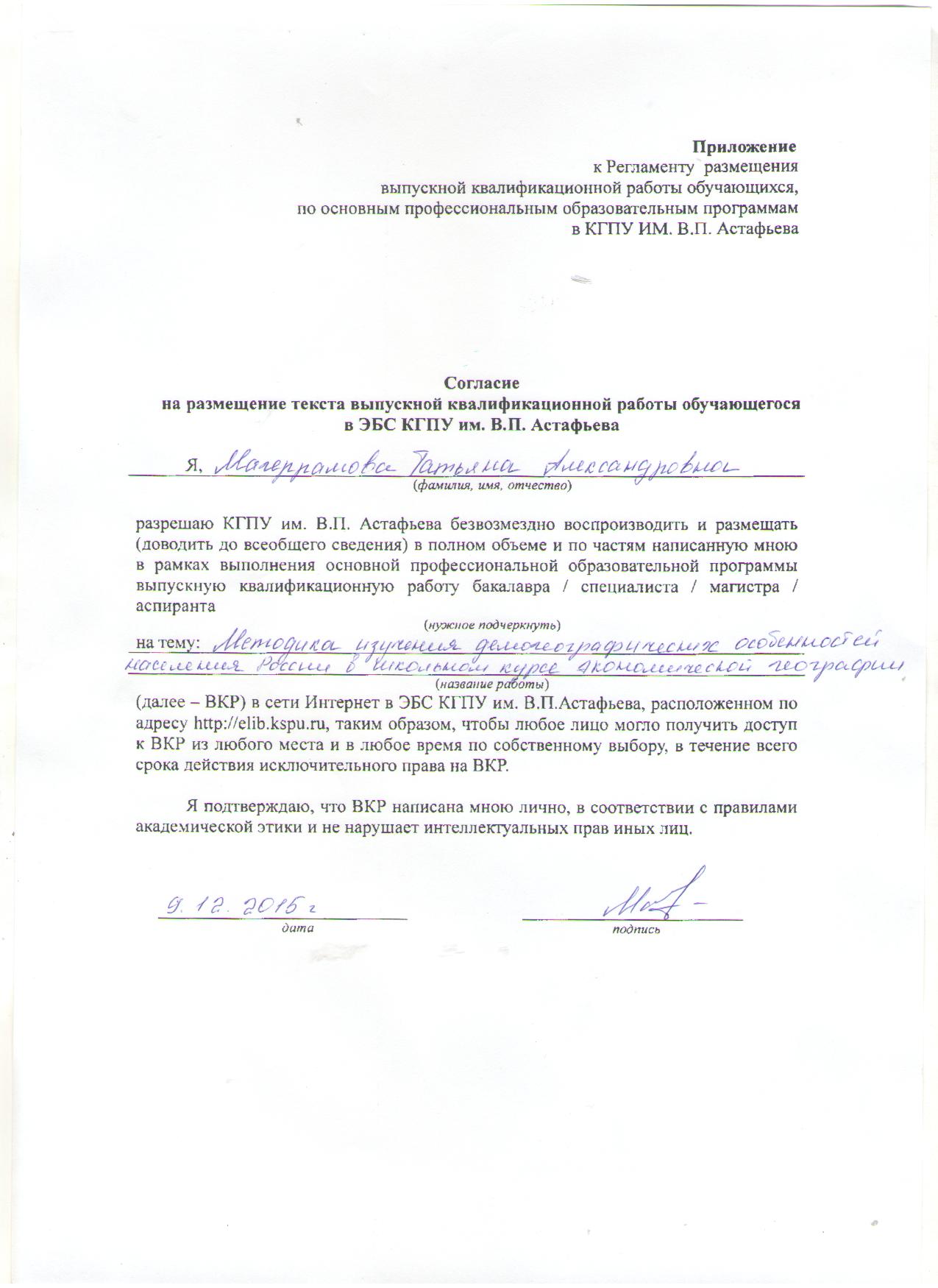 Методика изучения демогеографических особенностей населения России в школьном курсе экономической географии