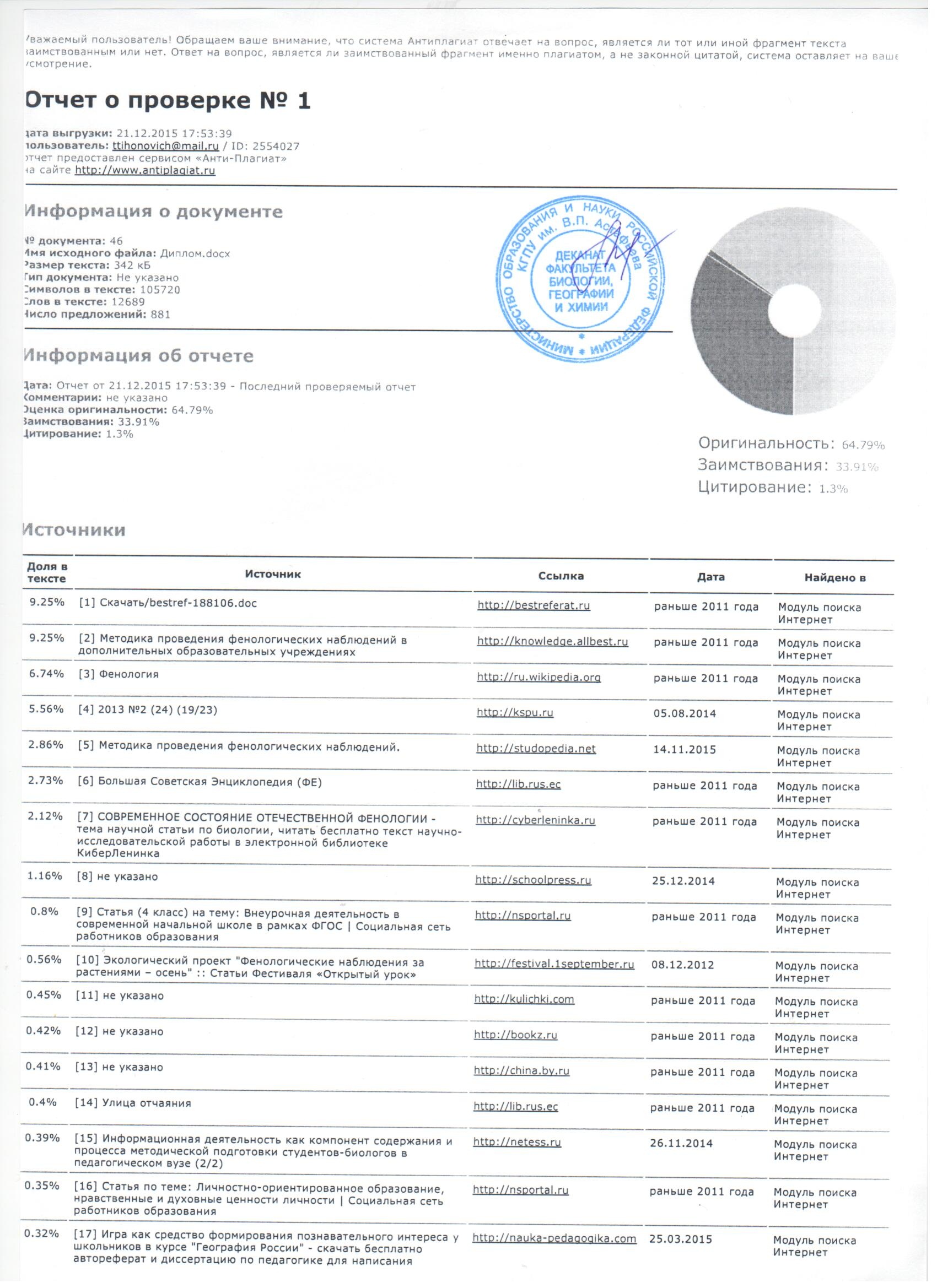 Финологические наблюдения в практико-ориентрованном обучении в географии
