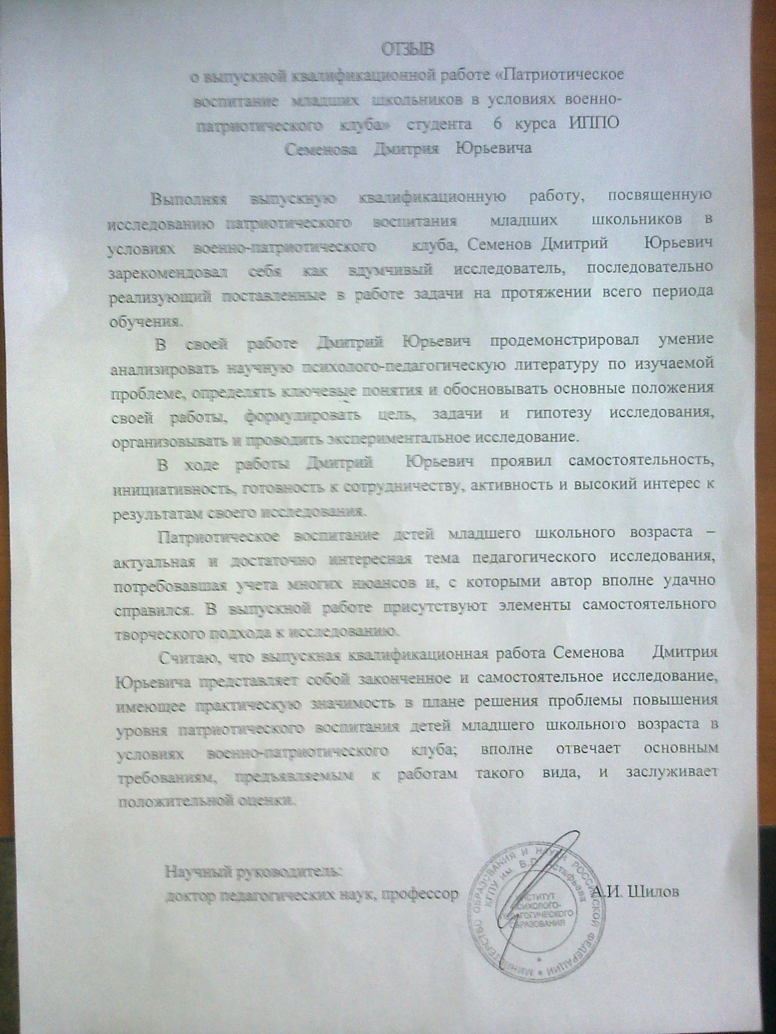 Патриотическое воспитание младших школьников в условиях военно - патриотического клуба
