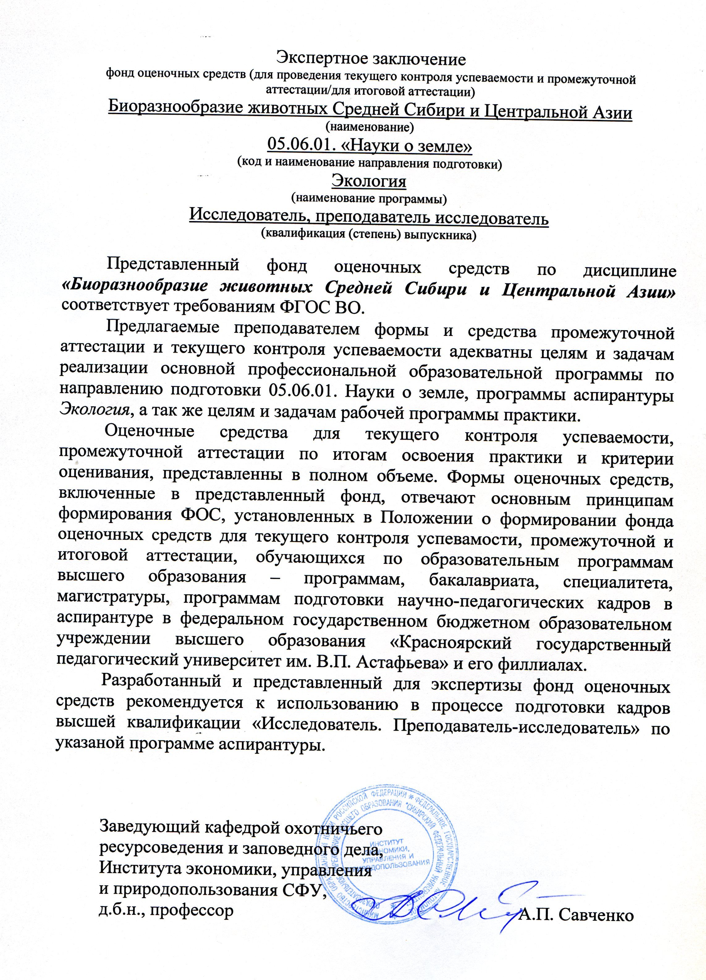 - БИОРАЗНООБРАЗИЕ ЖИВОТНЫХ СРЕДНЕЙ СИБИРИ И ЦЕНТРАЛЬНОЙ АЗИИ. Рабочая программа дисциплины. Образовательная программа 05.06.01 Науки о земле- Экология