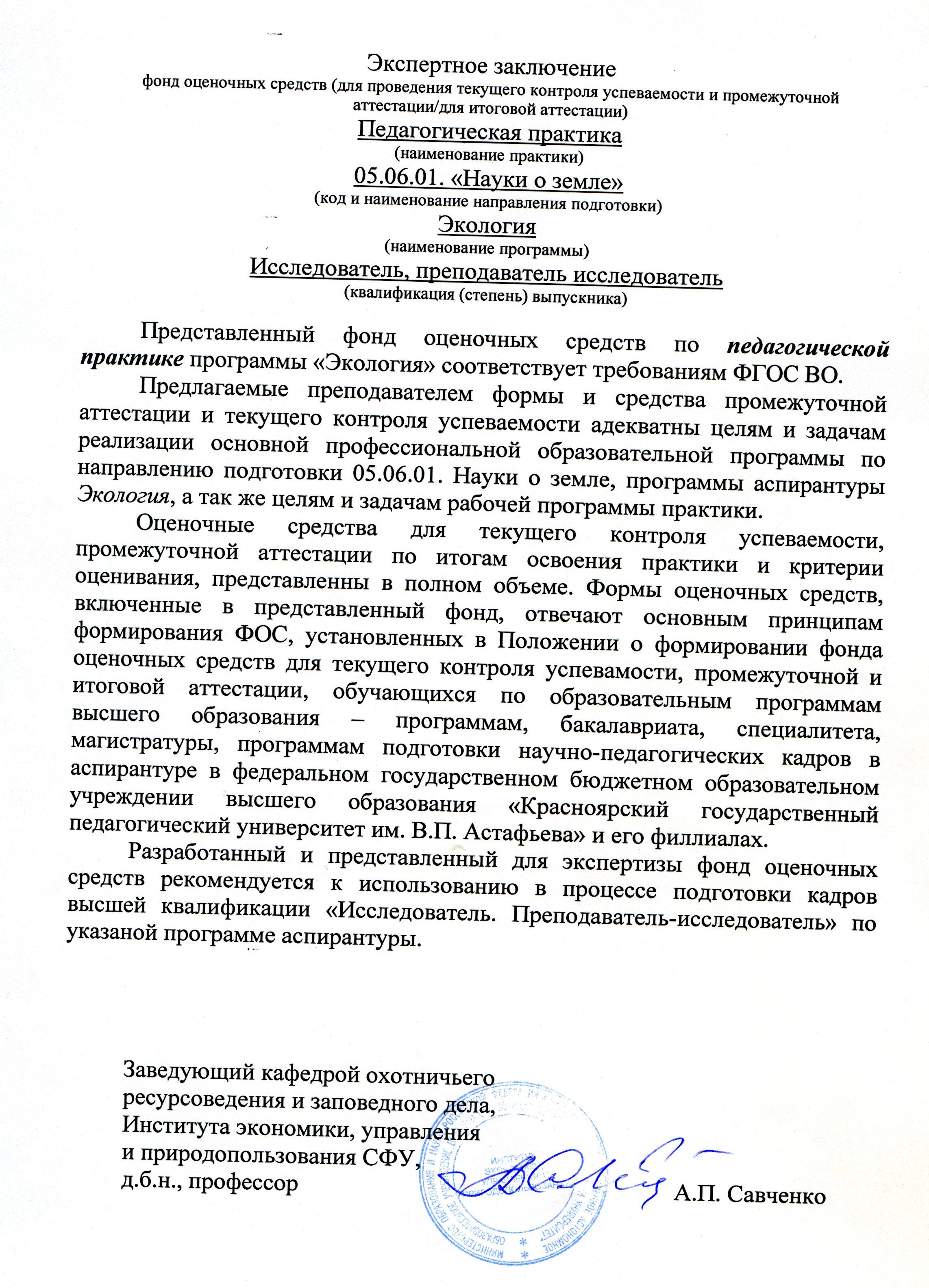 - ПЕДАГОГИЧЕСКАЯ ПРАКТИКА. Рабочая программа практики. Образовательная программа 05.06.01 Науки о земле- Экология
