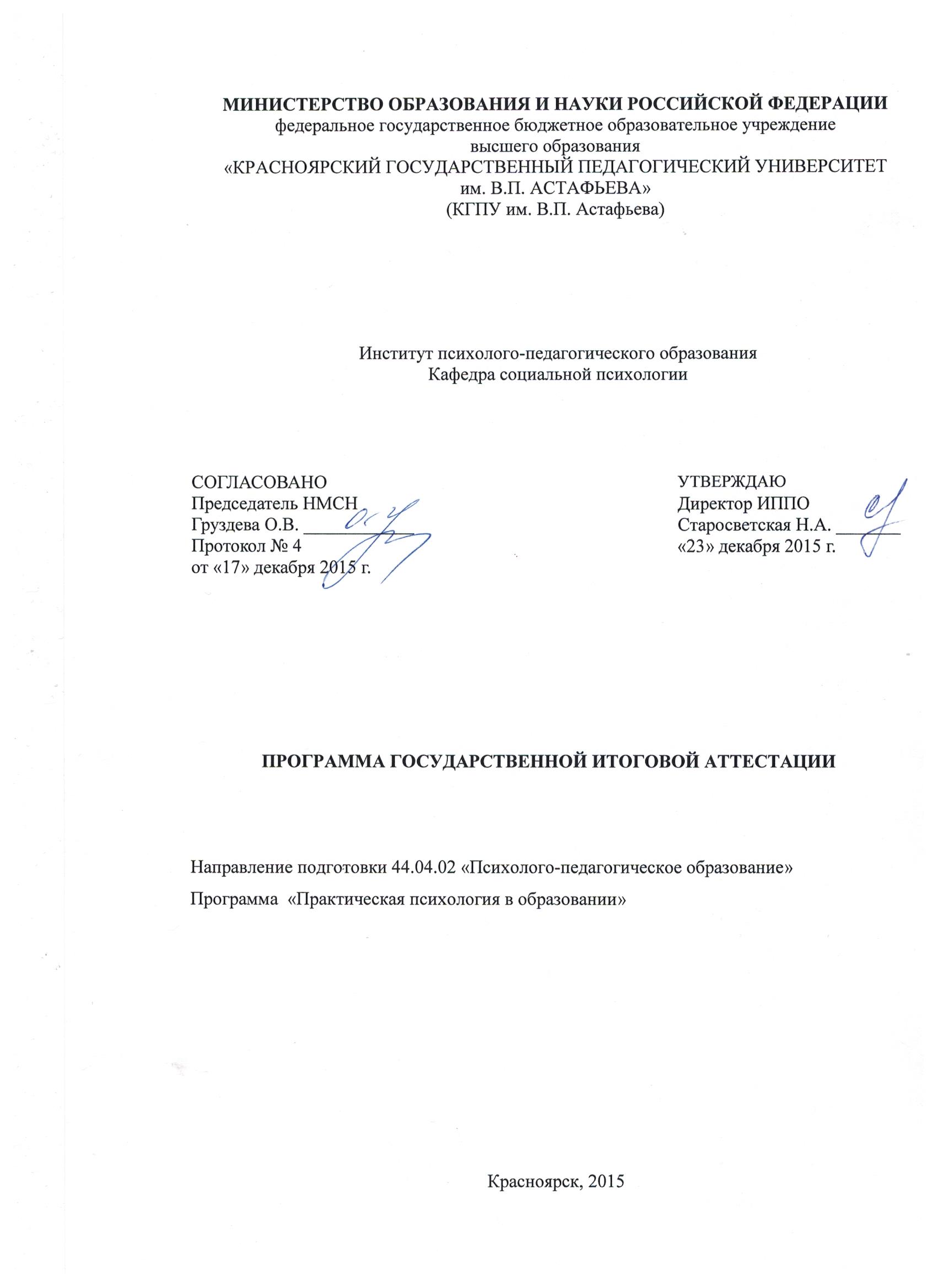 - ПРОГРАММА ГОСУДАРСТВЕННОЙ ИТОГОВОЙ АТТЕСТАЦИИ Направление подготовки 44.04.02 «Психолого-педагогическое образование» Программа «Практическая психология в образовании»