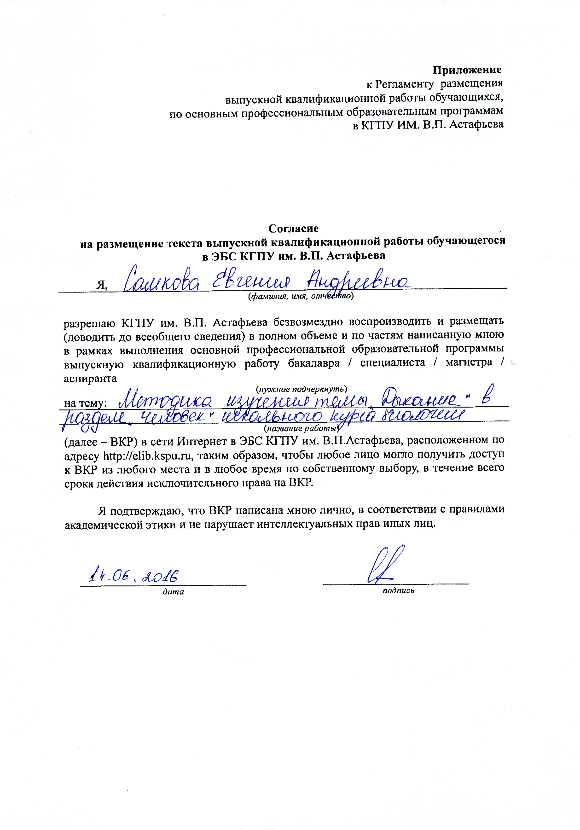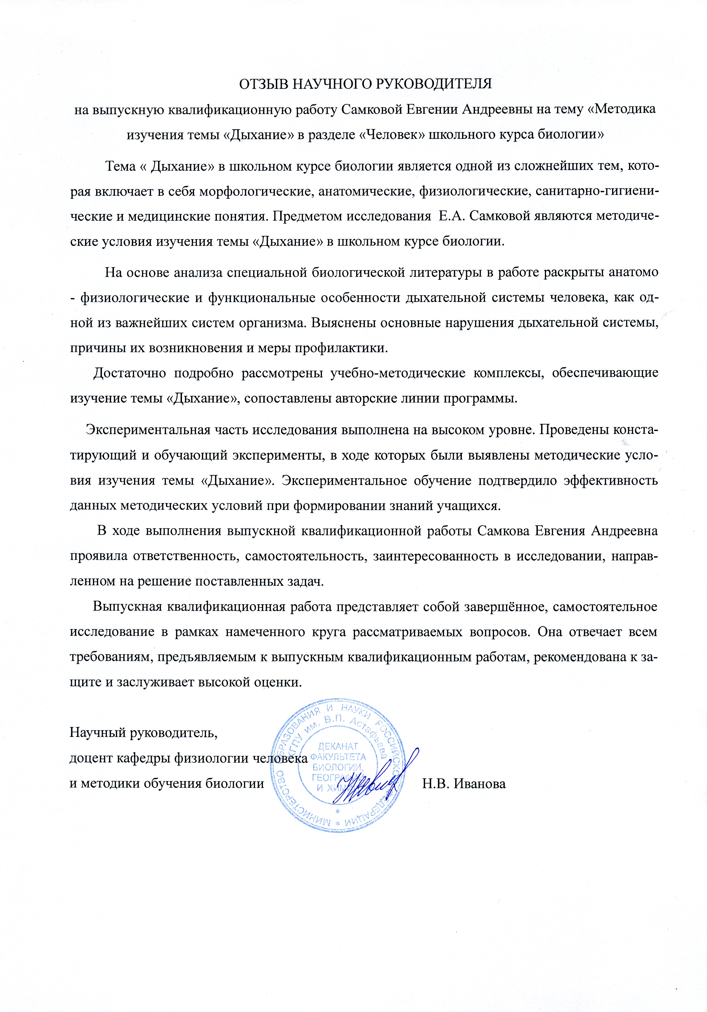Методика изучения темы "Дыхание" в разделе "Человек" школьного курса биологии