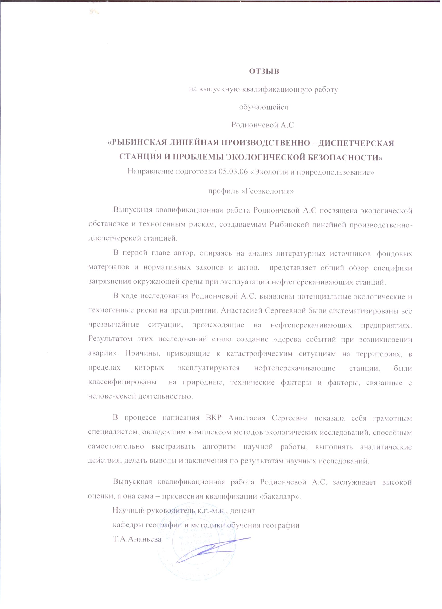 РЫБИНСКАЯ ЛИНЕЙНАЯ ПРОИЗВОДСТВЕННО – ДИСПЕТЧЕРСКАЯ СТАНЦИЯ И ПРОБЛЕМЫ ЭКОЛОГИЧЕСКОЙ БЕЗОПАСНОСТИ