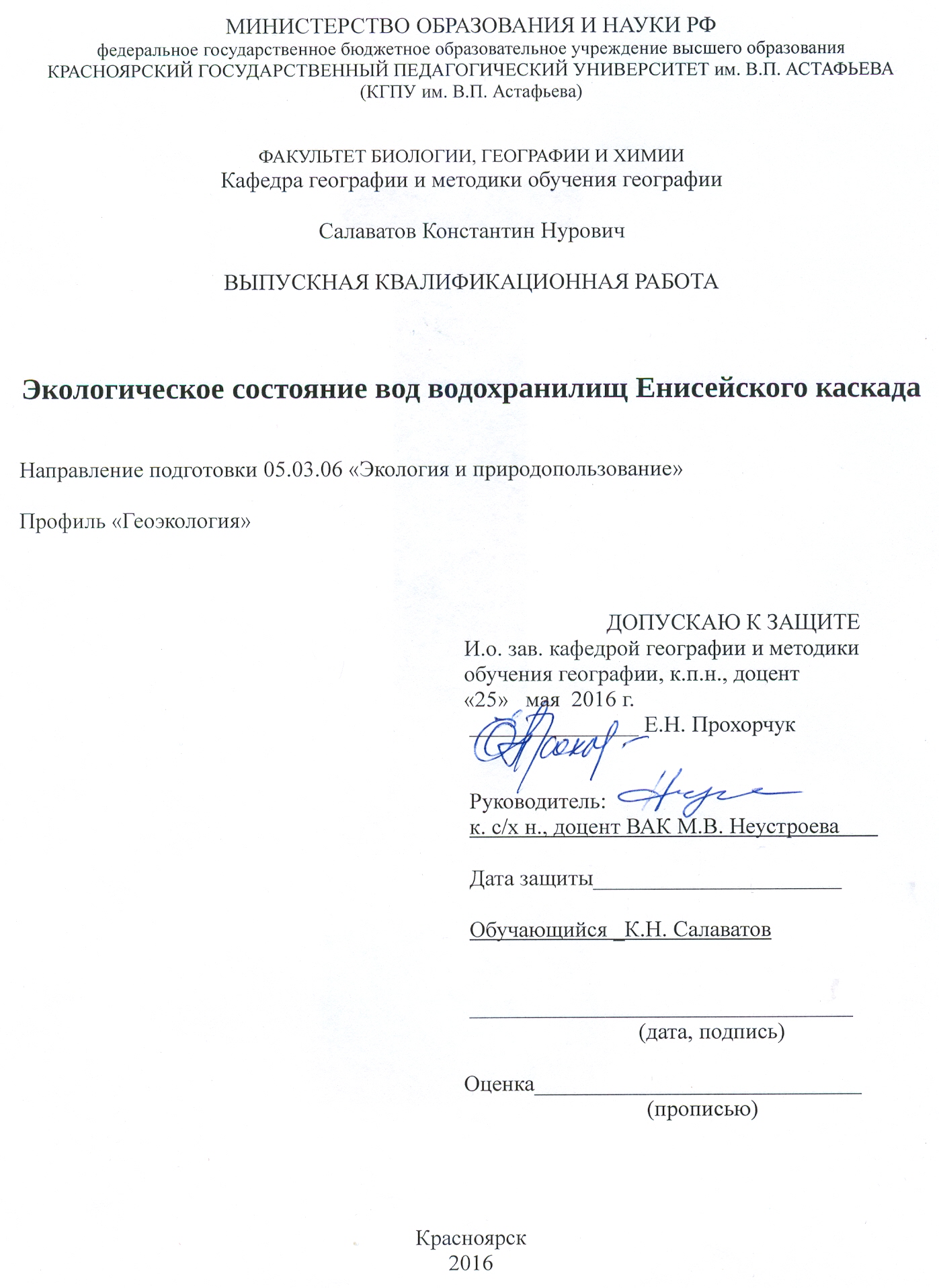 Экологическое состояние вод водохранилищ Енисейского каскада