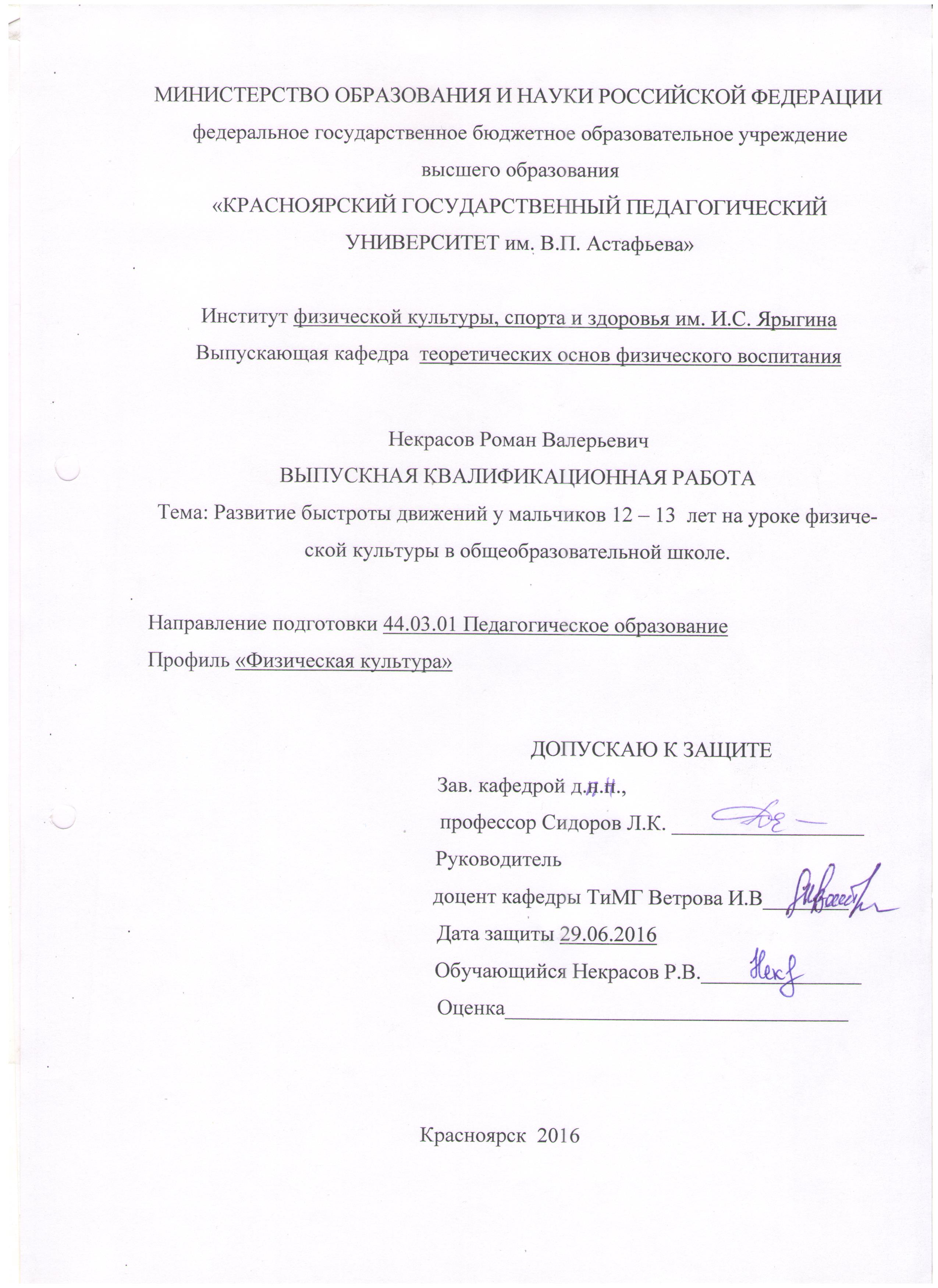 Развитие быстроты движений у мальчиков 12-13 лет на уроке физической культуры в общеобразовательной школе