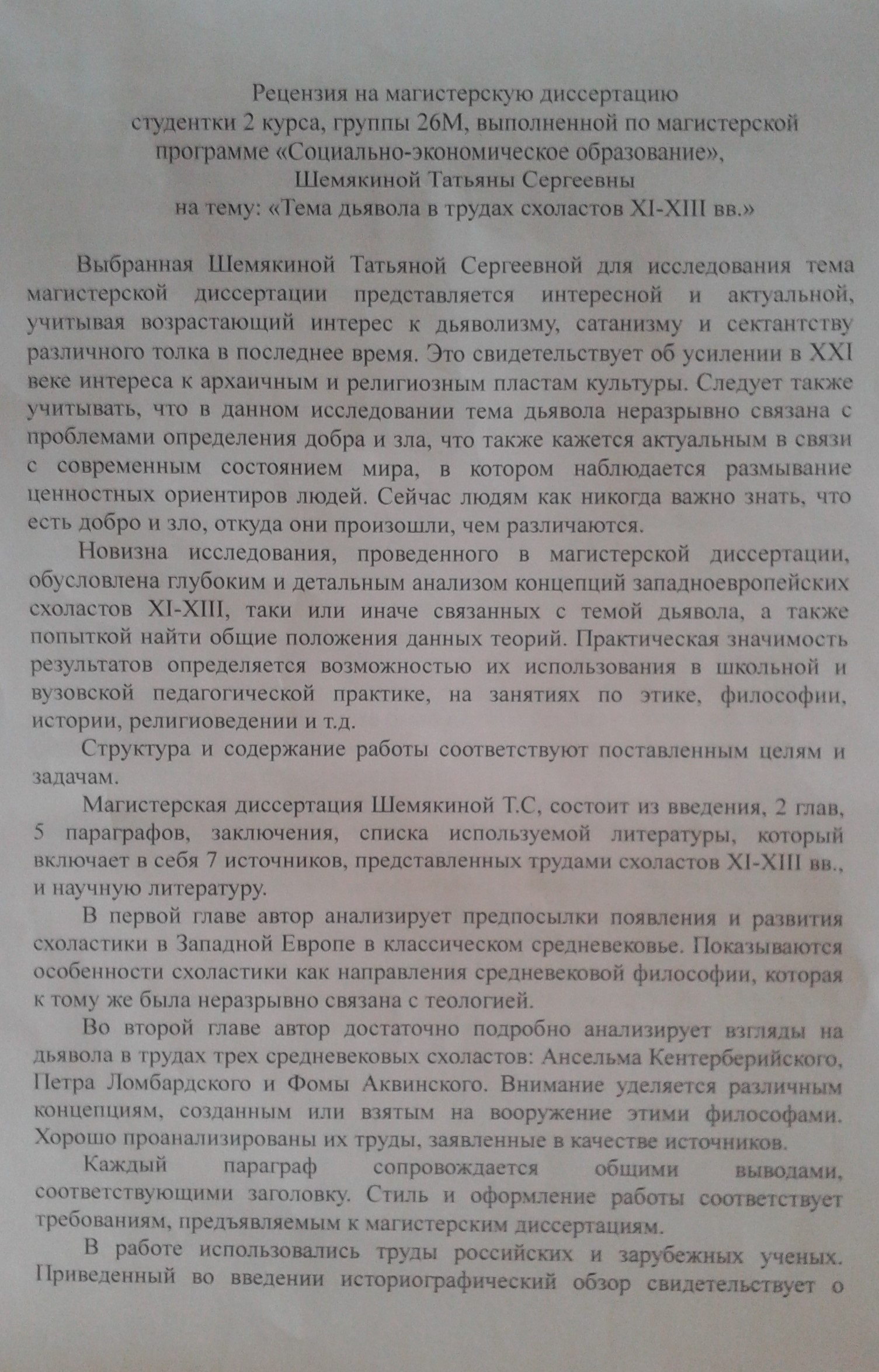 Тема дьявола в трудах схоластов XII - XIII вв.