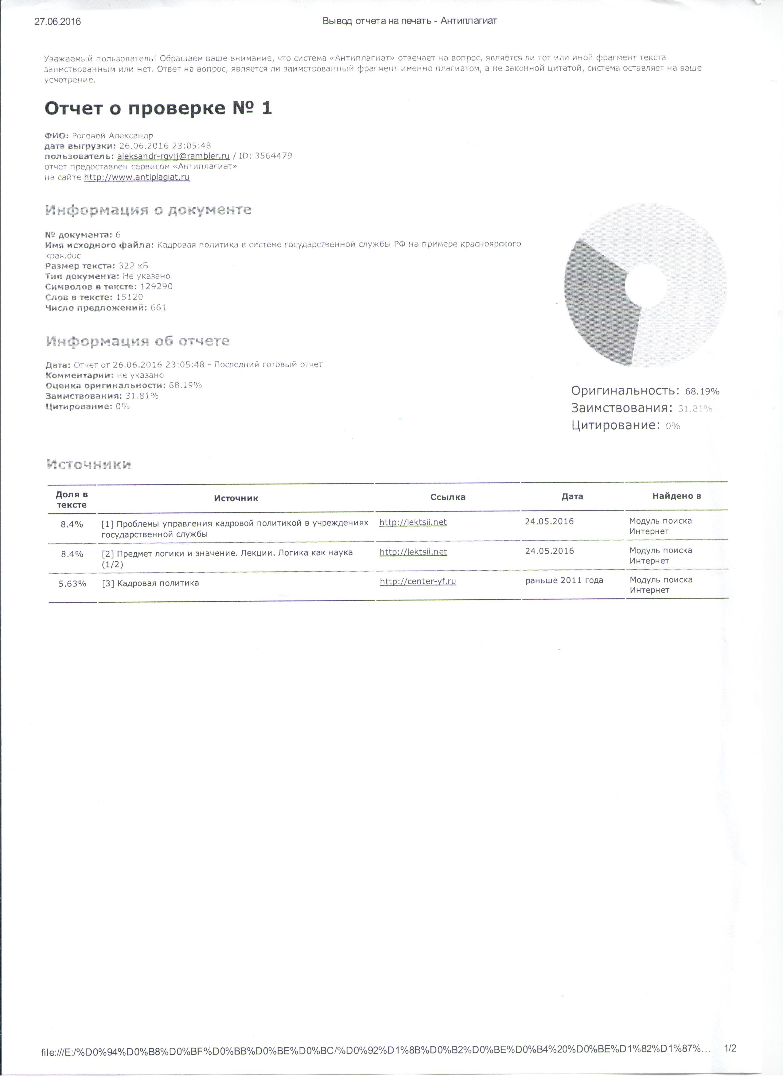 Кадровая политика в системе государственной службы РФ (на примере Красноярского края)