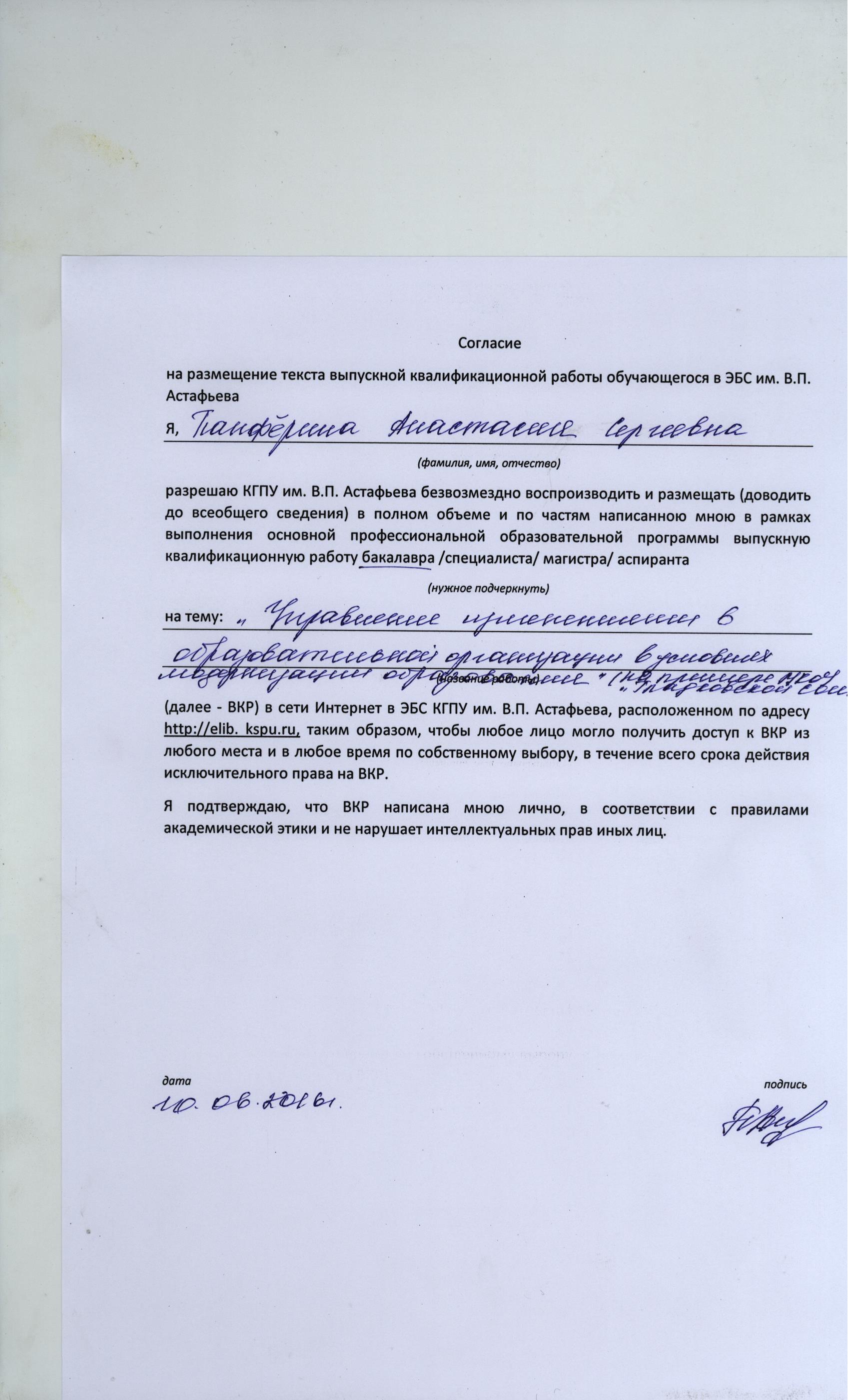 Управление изменениями в образовательной организации в условиях модернизации образования» (на примере МКОУ «Гладковской СОШ»)