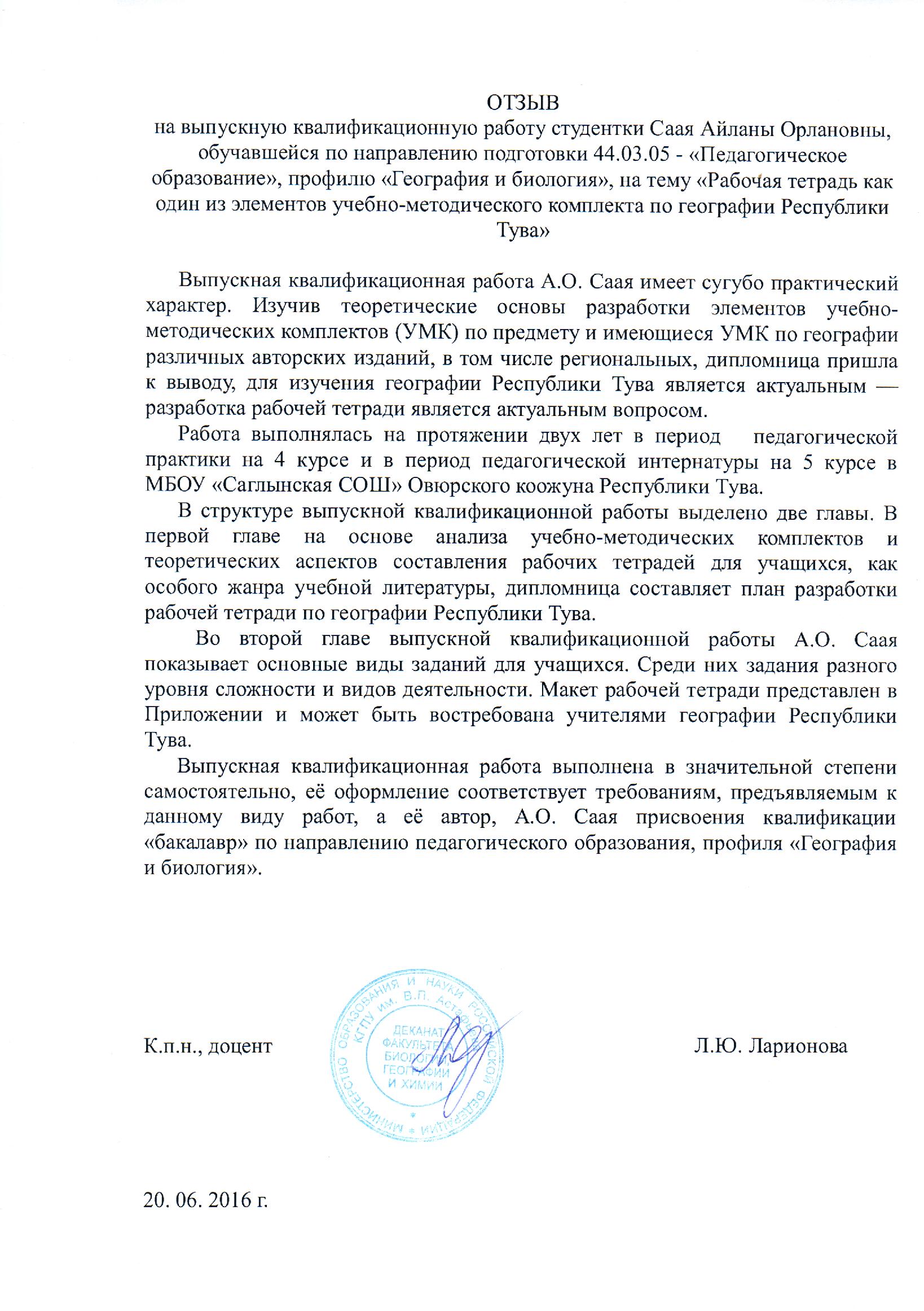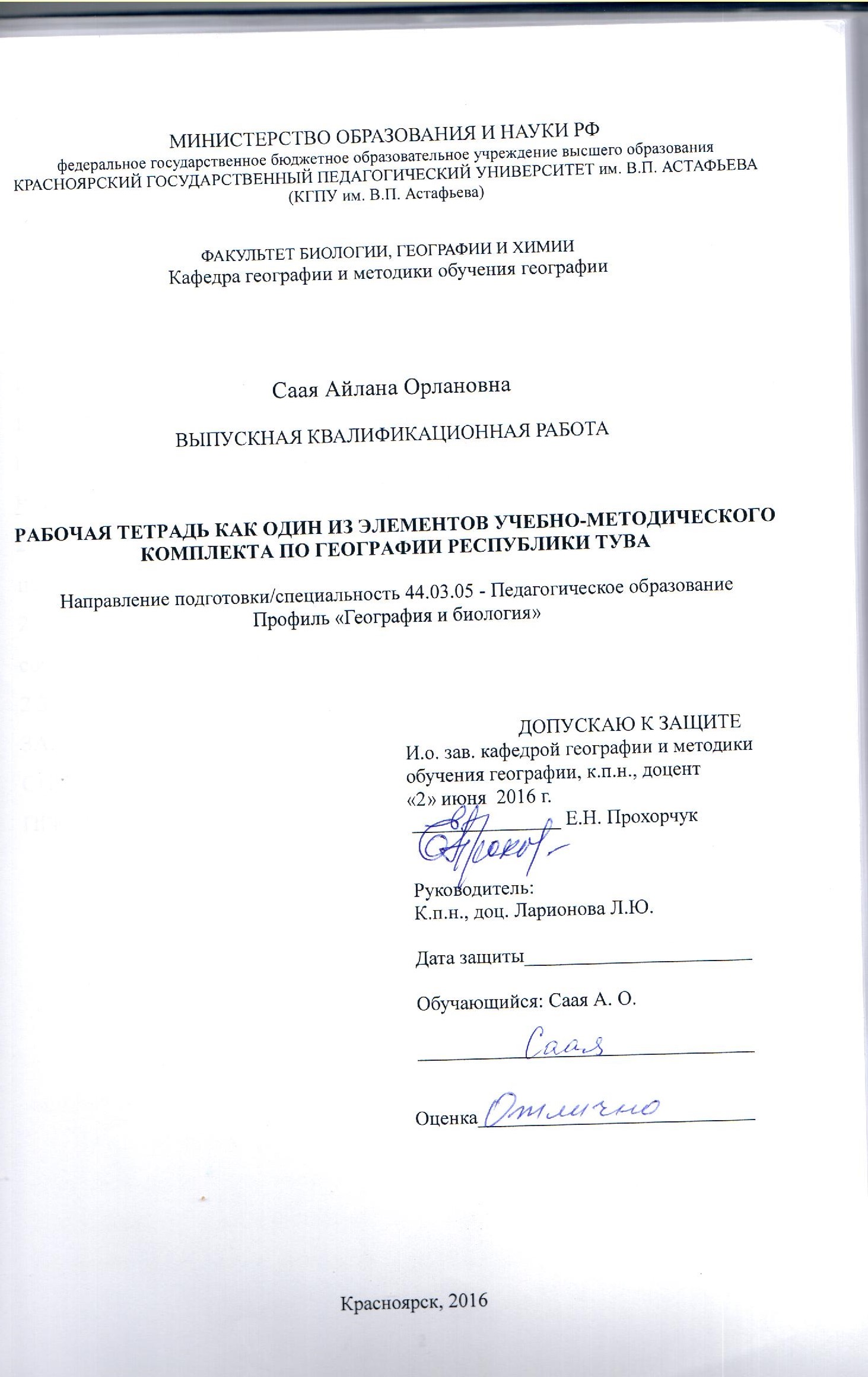 Рабочая тетрадь как один из элементов учебно-методического комплекта по географии РеспубликиТува
