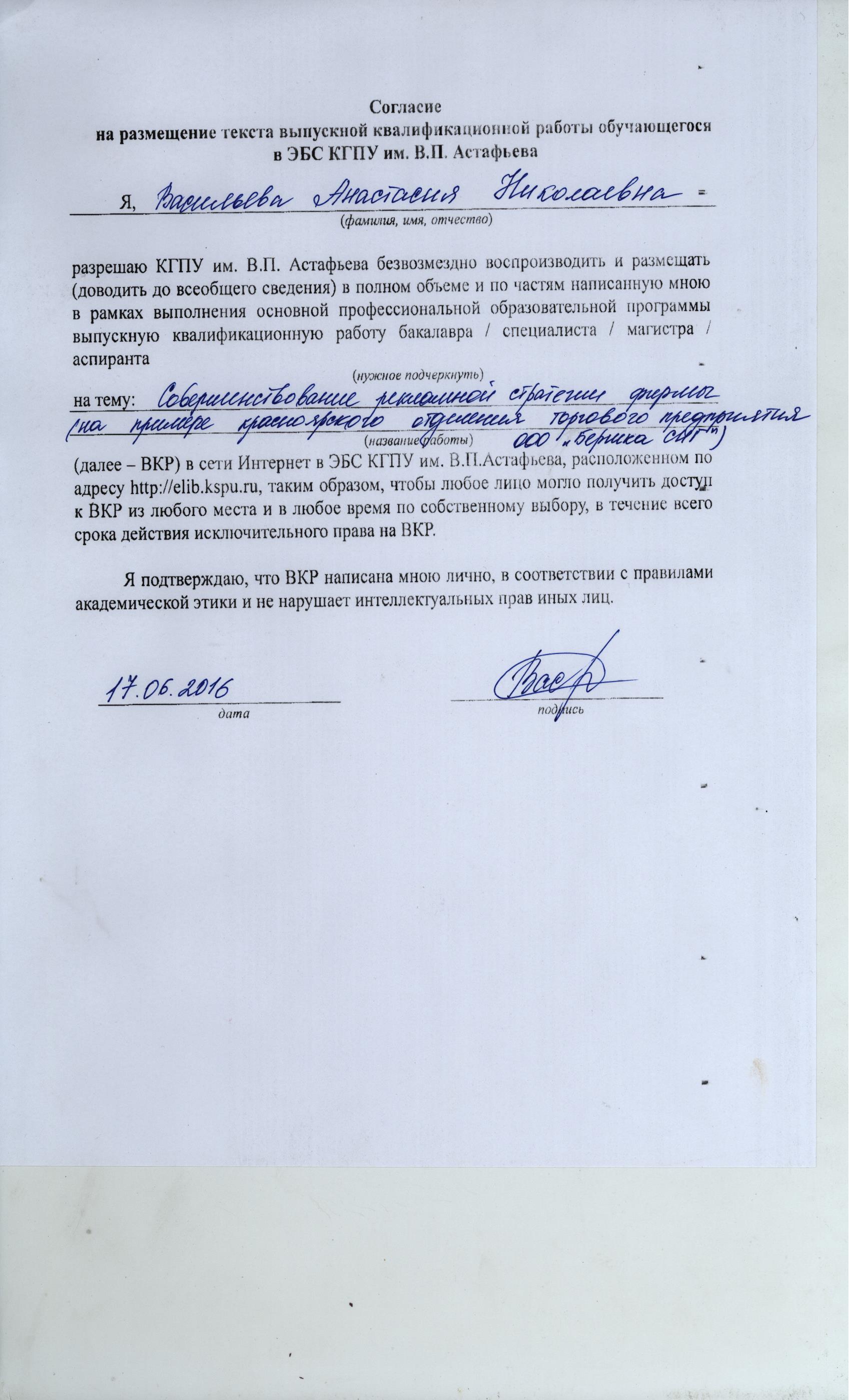 Совершенствование рекламной стратегии фирмы (на примере красноярского отделения торгового предприятия ООО "Бершка СНГ")