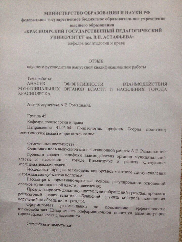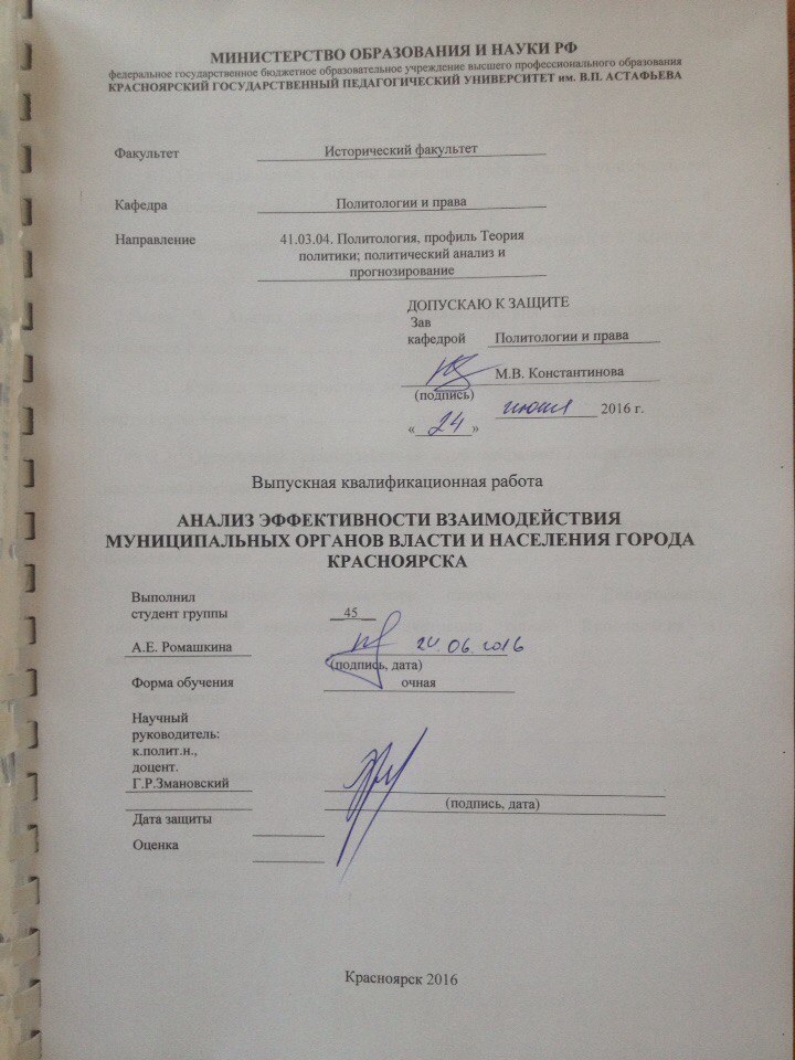 АНАЛИЗ ЭФФЕКТИВНОСТИ ВЗАИМОДЕЙСТВИЯ МУНИЦИПАЛЬНЫХ ОРГАНОВ ВЛАСТИ И НАСЕЛЕНИЯ ГОРОДА КРАСНОЯРСКА