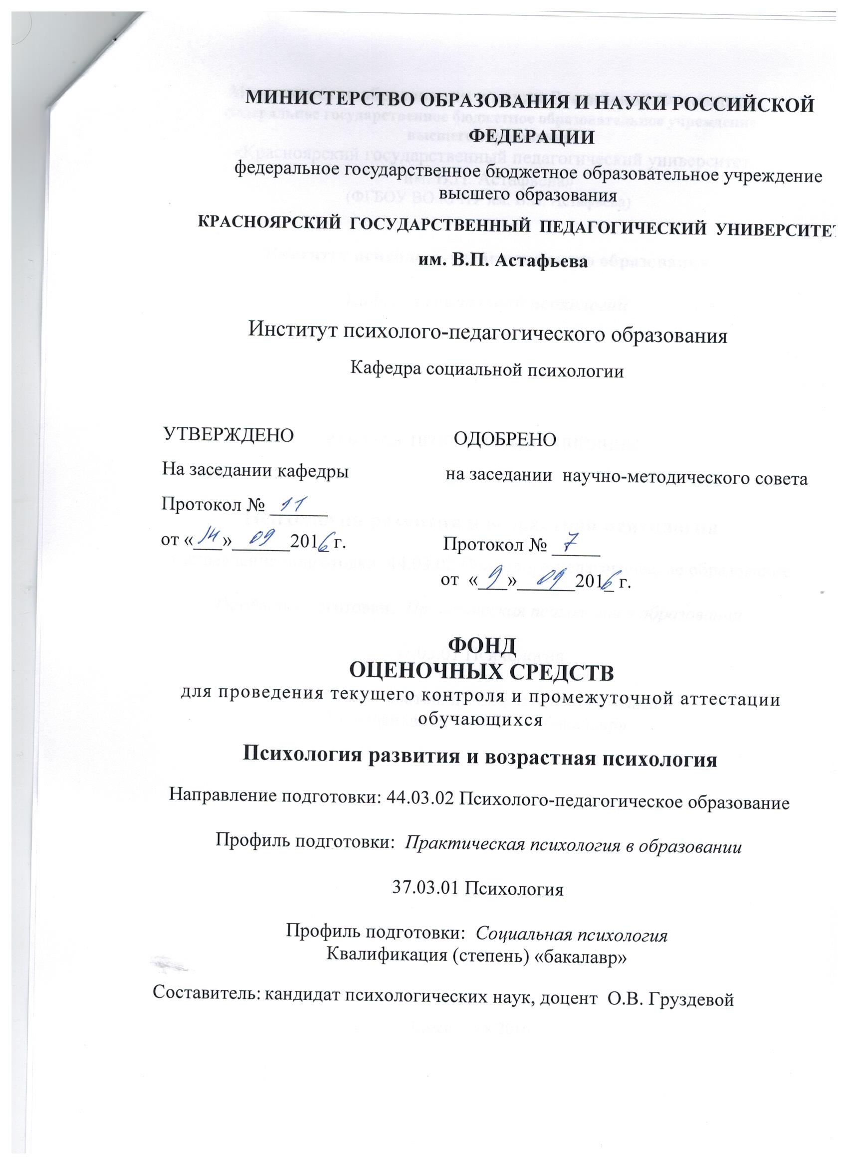 - Психология развития и возрастная психология на 2017