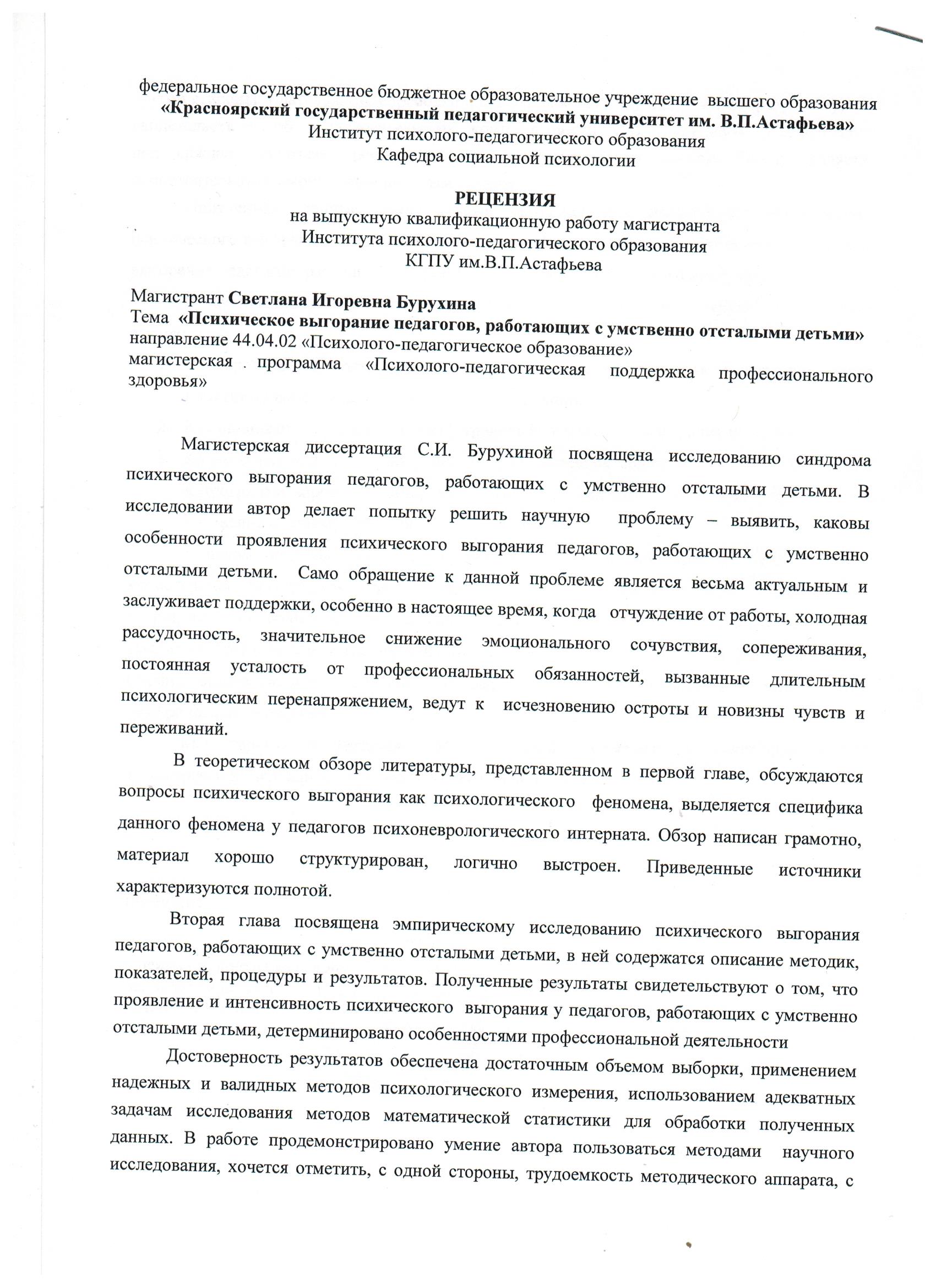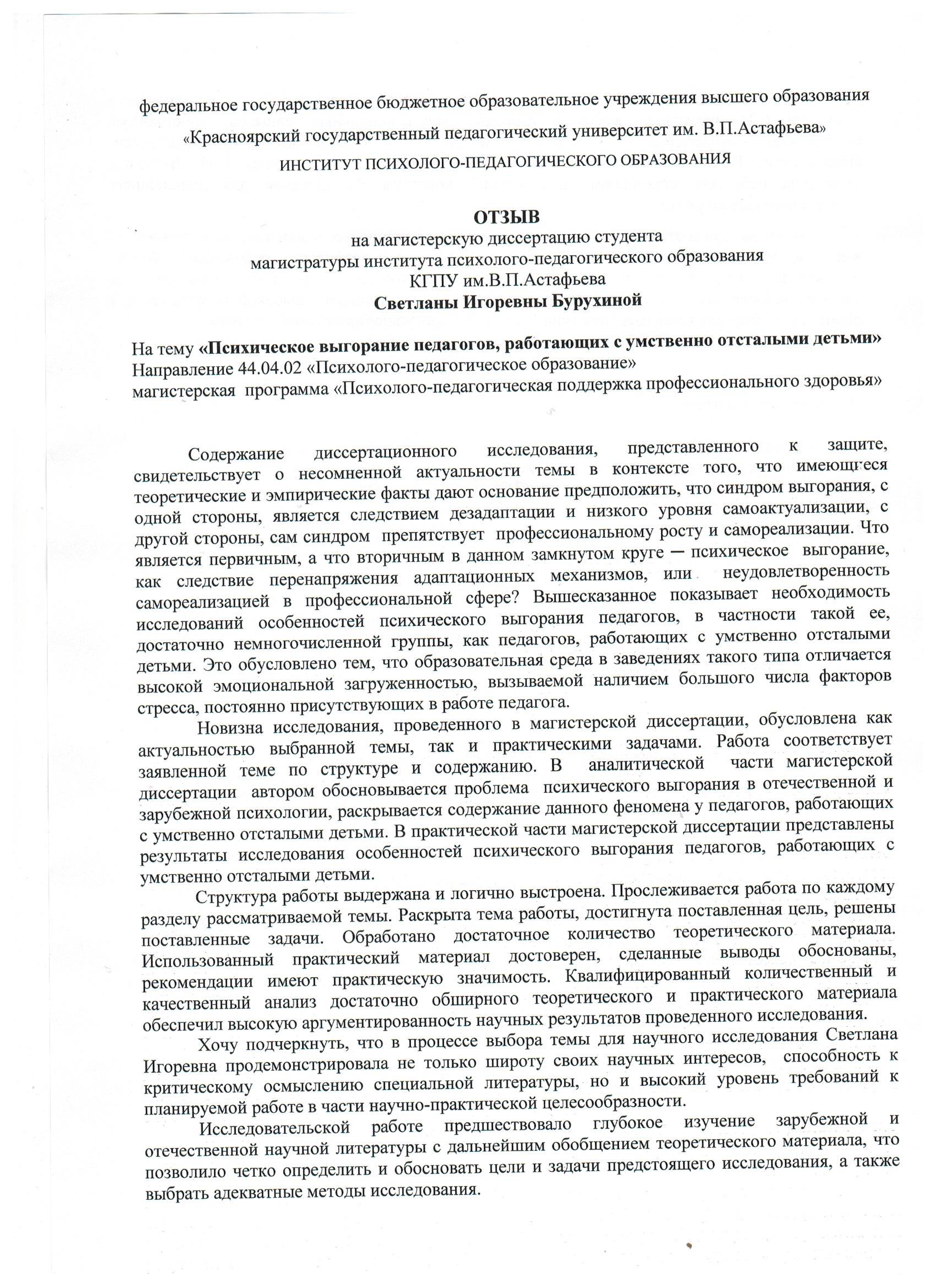 Бурухина С.И. Психическое выгорание педагогов, работающих с умственно отсталыми детьми