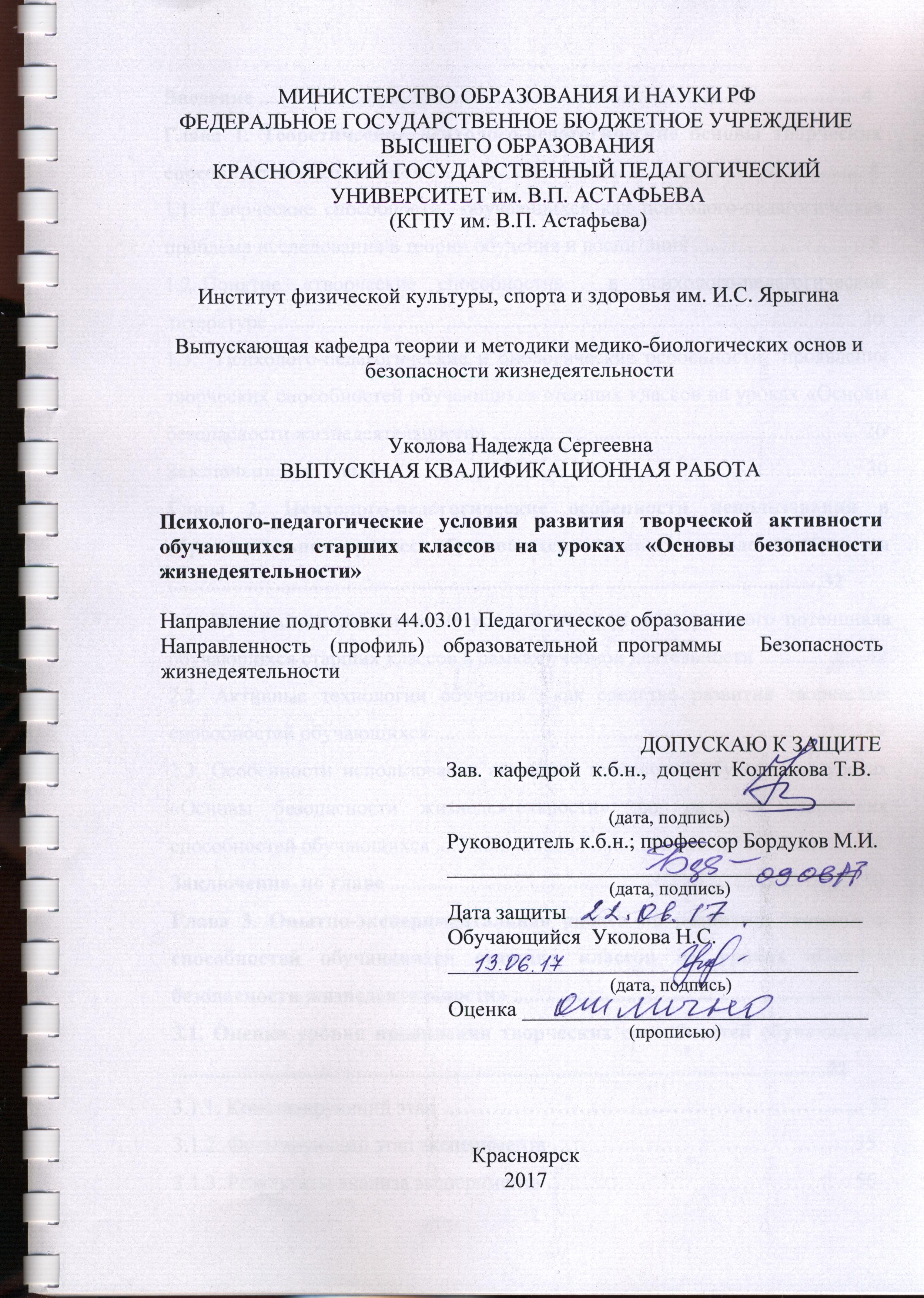 Психолого-педагогические условия развития творческой активности обучающихся старших классов на уроках «Основы безопасности жизнедеятельности»