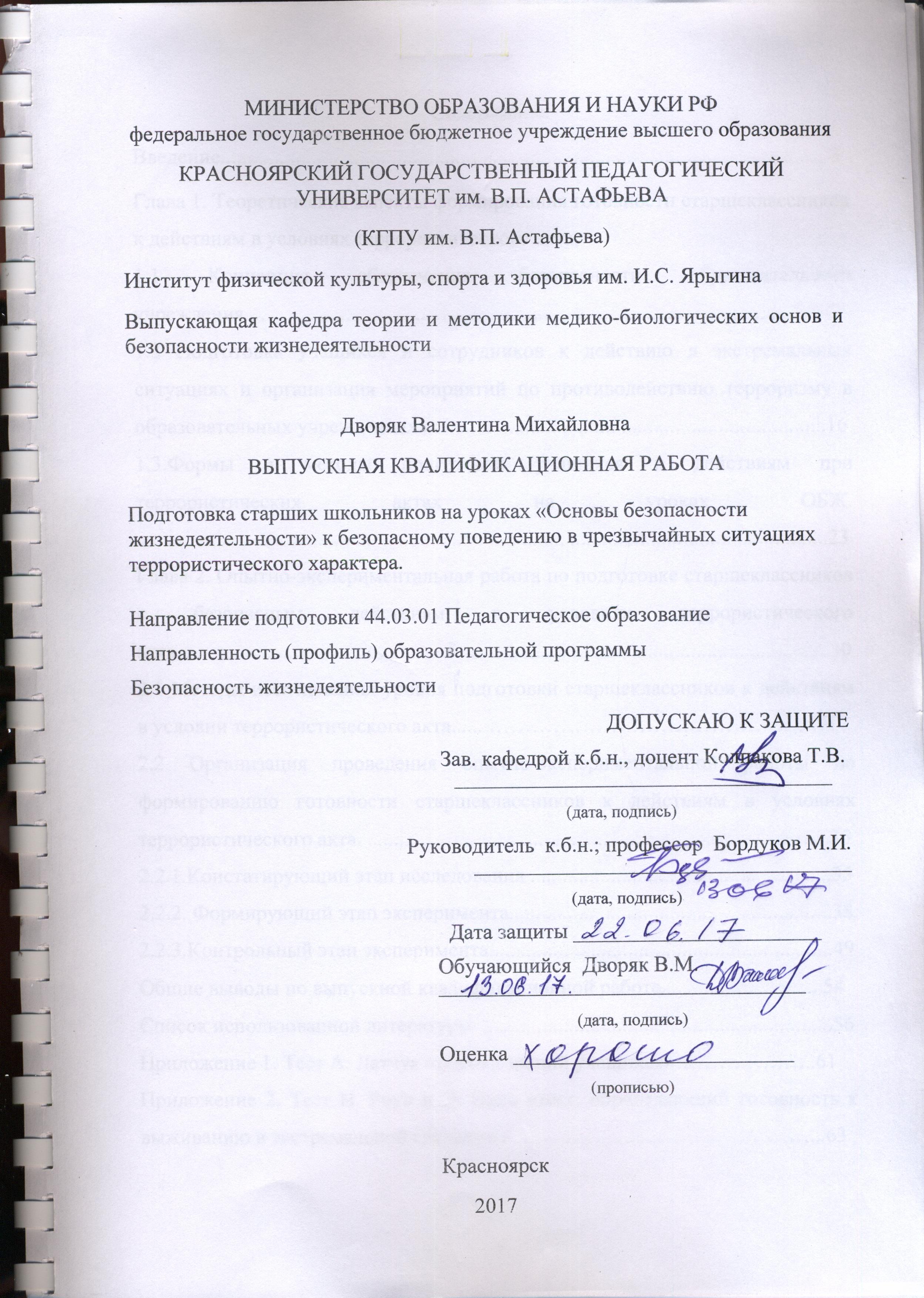 Подготовка старших школьников на уроках «Основы безопасности жизнедеятельности» к безопасному поведению в чрезвычайных ситуациях террористического характера.