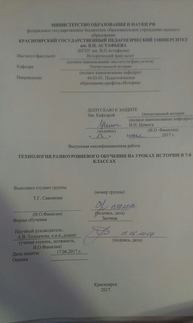 ТЕХНОЛОГИЯ РАЗНОУРОВНЕВОГО ОБУЧЕНИЯ НА УРОКАХ ИСТОРИИ В 7-8 КЛАССАХ