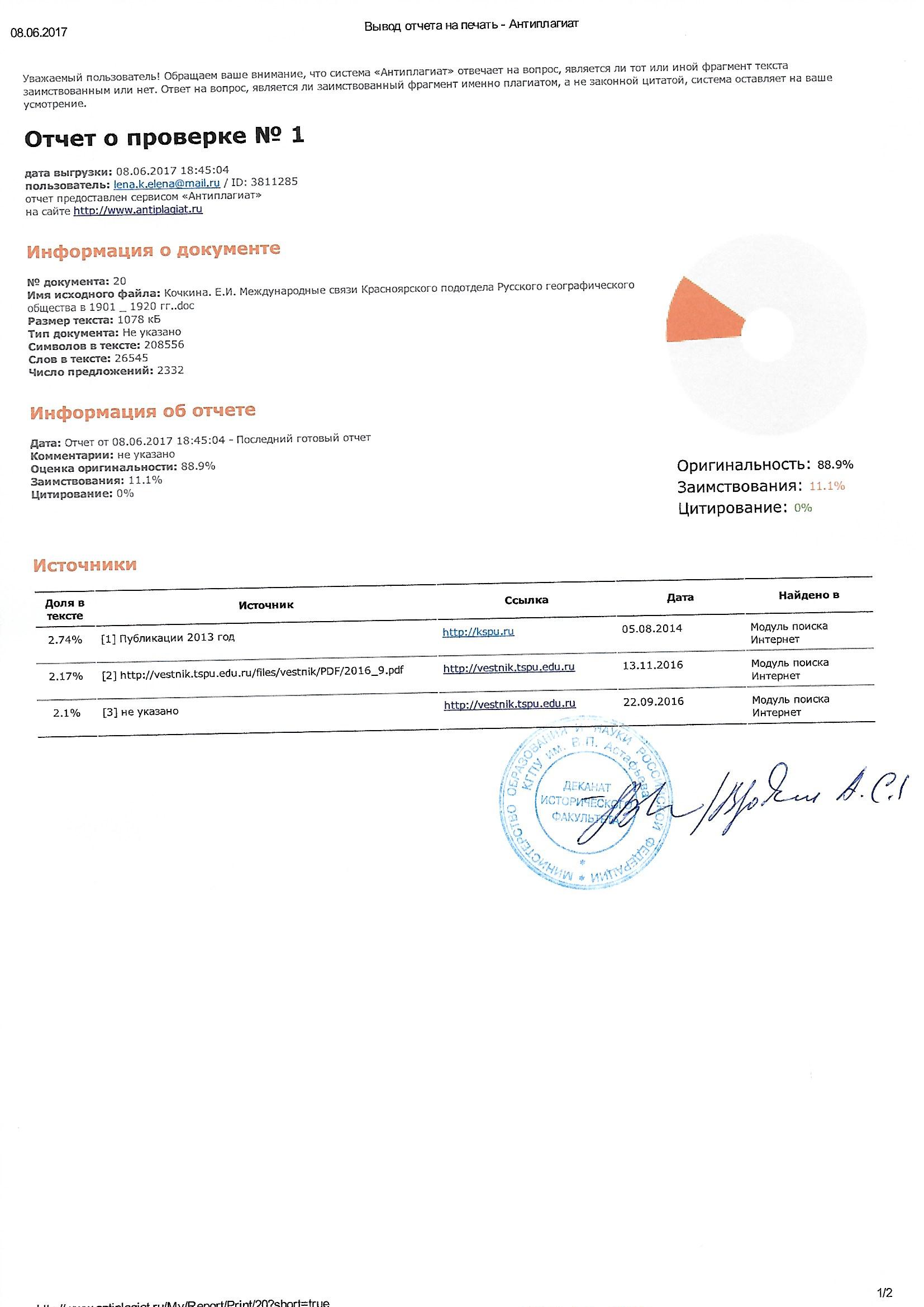Международные научные связи Красноярского подотдела Русского географического общества 1901-1920 гг.