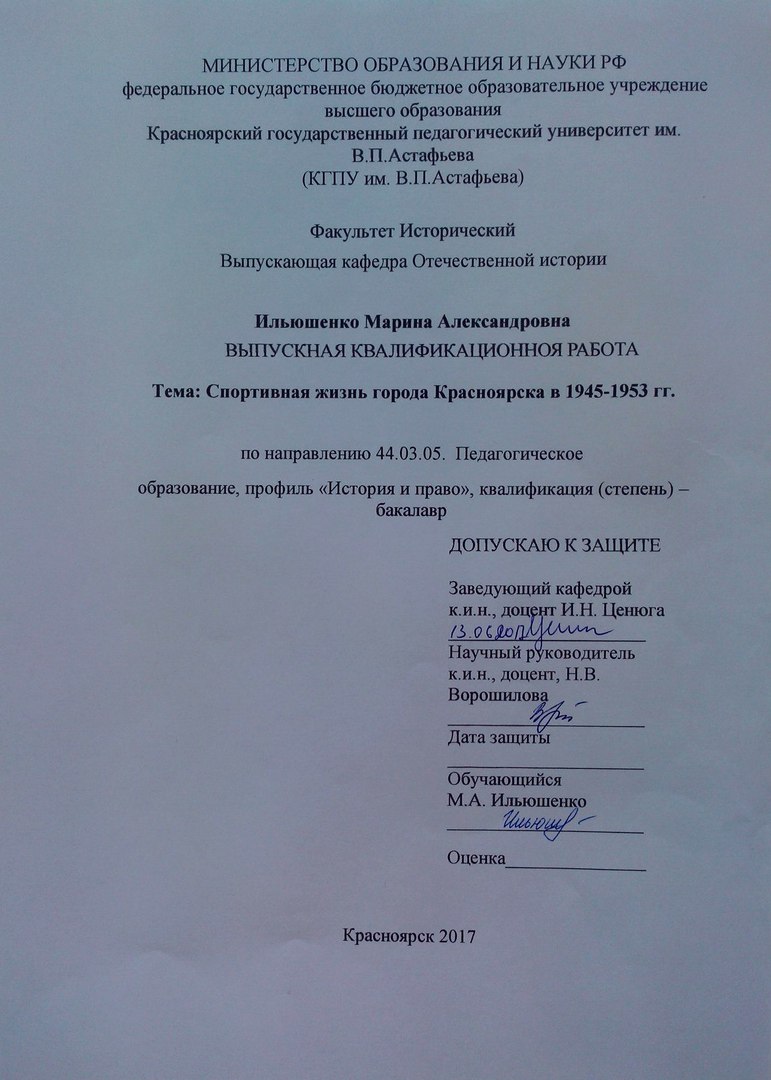 Спортивная жизнь города Красноярска в 1945-1953 гг.