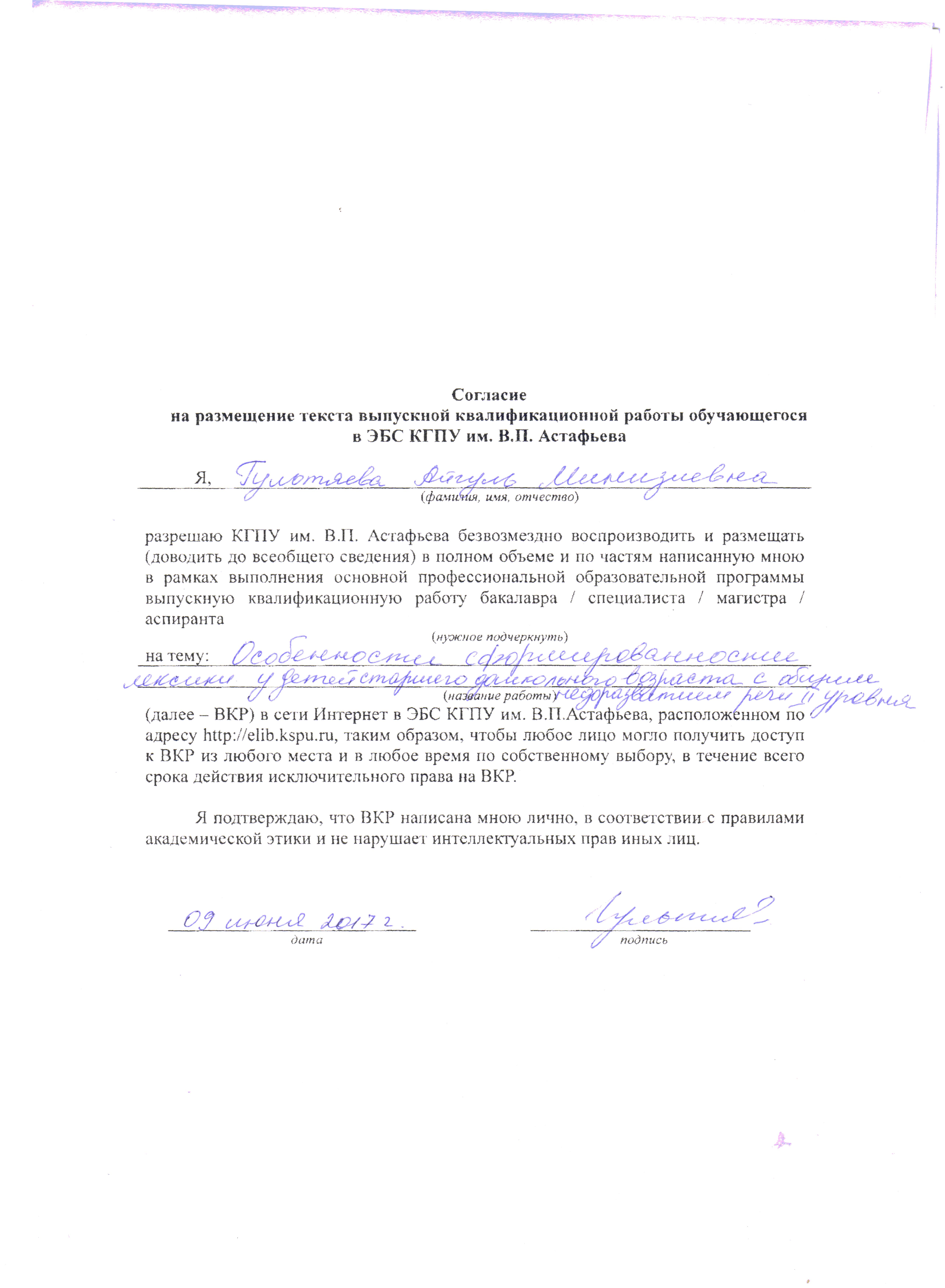 Особенности сформированности лексики у детей старшего дошкольного возраста с общим недоразвитием речи II уровня