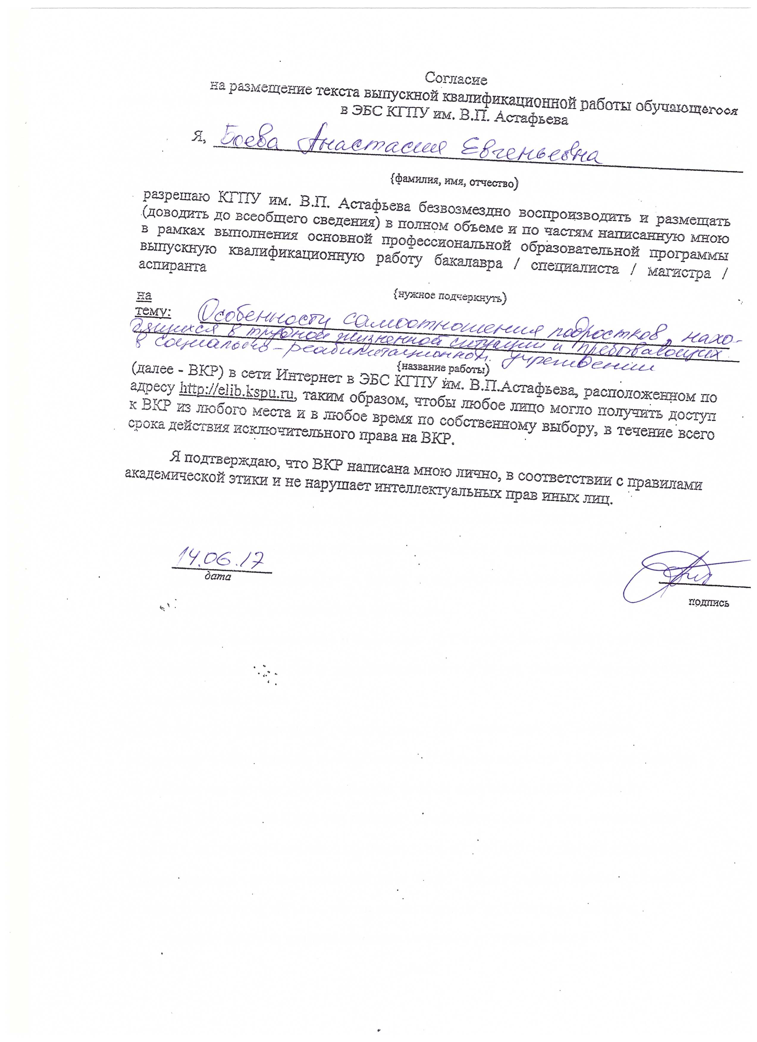 Боева А.Е. Особенности самоотношения подростков, находящихся в трудной жизненной ситуации и пребывающих в социально-реабилитационном центре