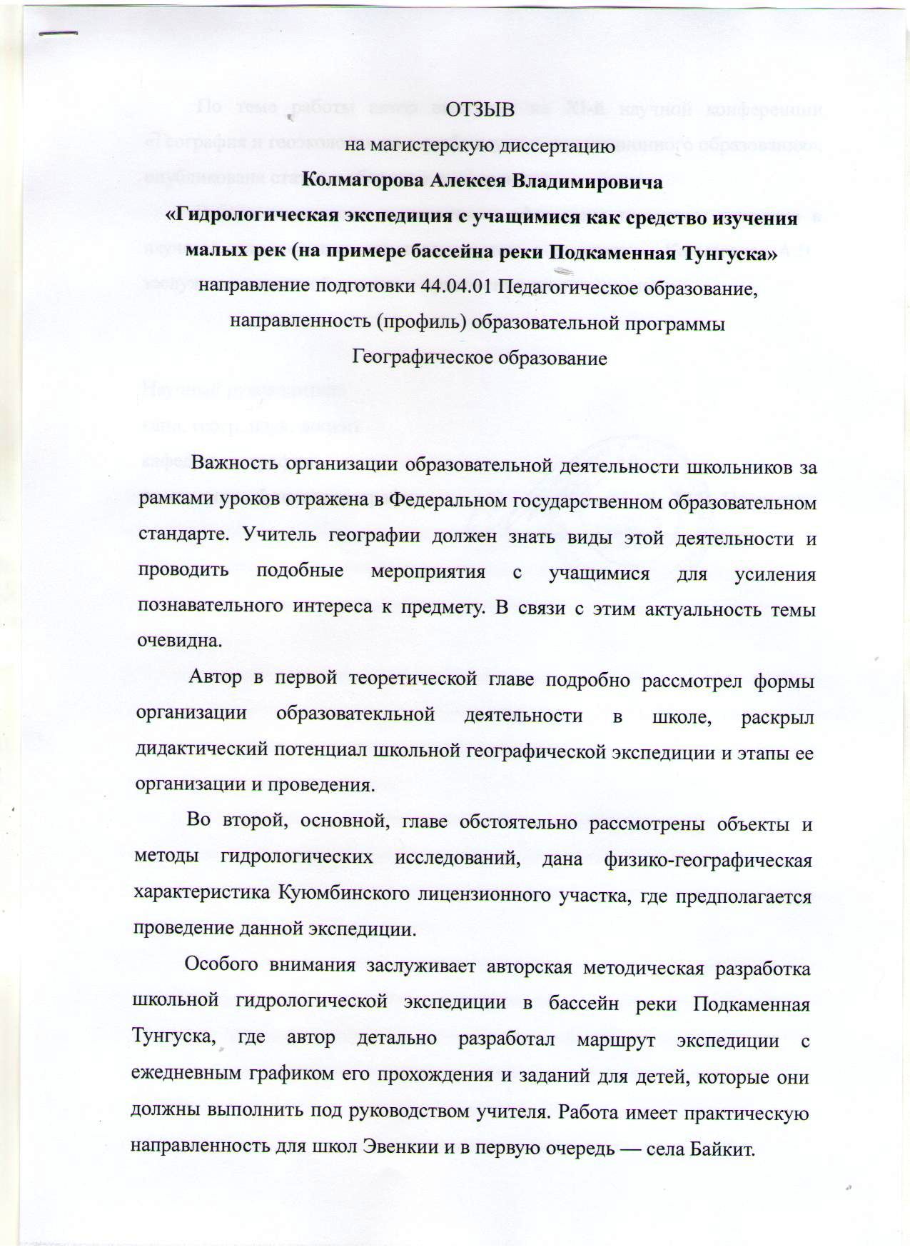 Гидрологическая экспедиция с учащимися как средство изучения малых рек (на примере бассейна реки Подкаменная Тунгуска)