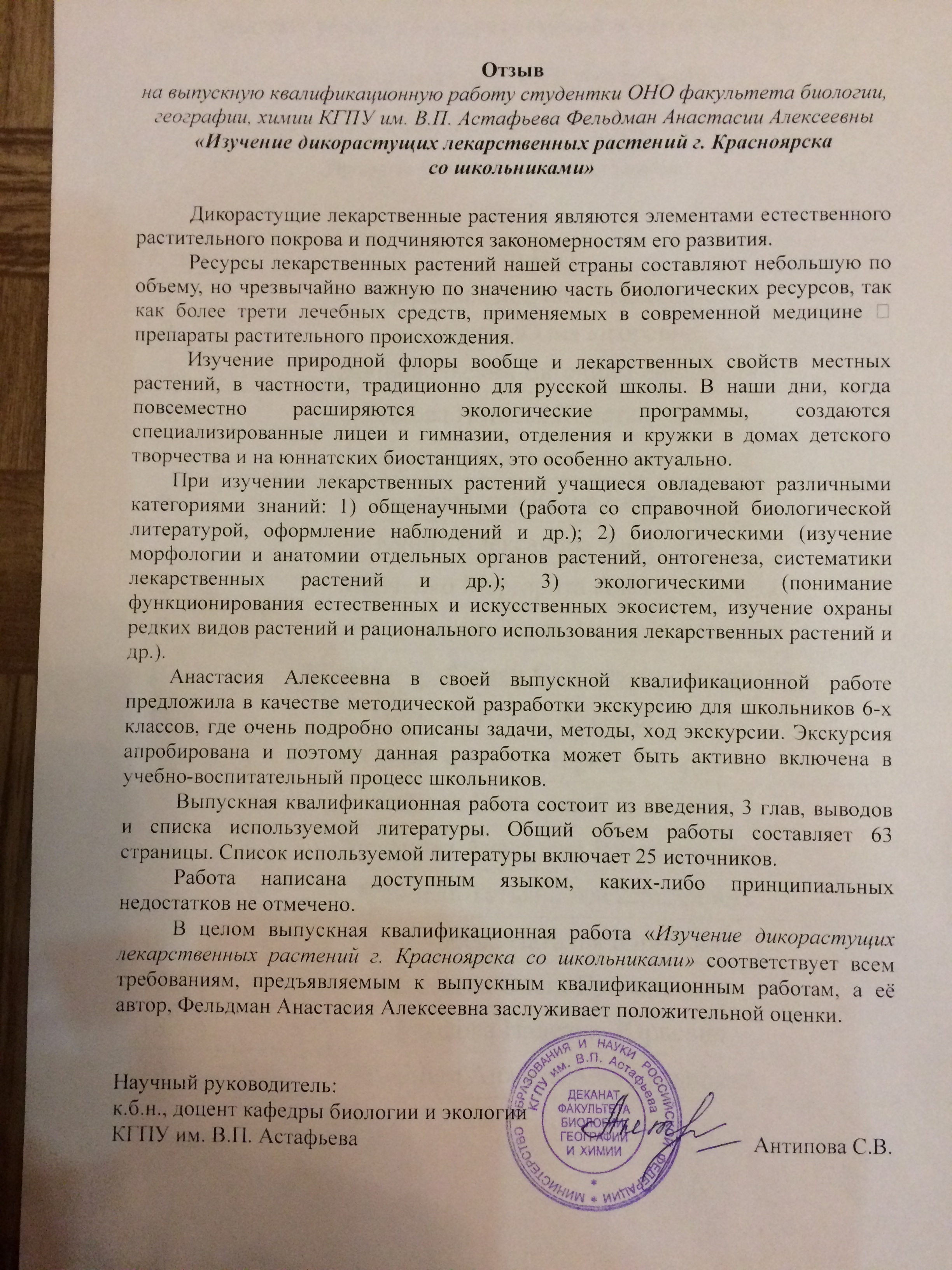 ИЗУЧЕНИЕ ДИКОРАСТУЩИХ ЛЕКАРСТВЕННЫХ РАСТЕНИЙ Г. КРАСНОЯРСКА СО ШКОЛЬНИКАМИ