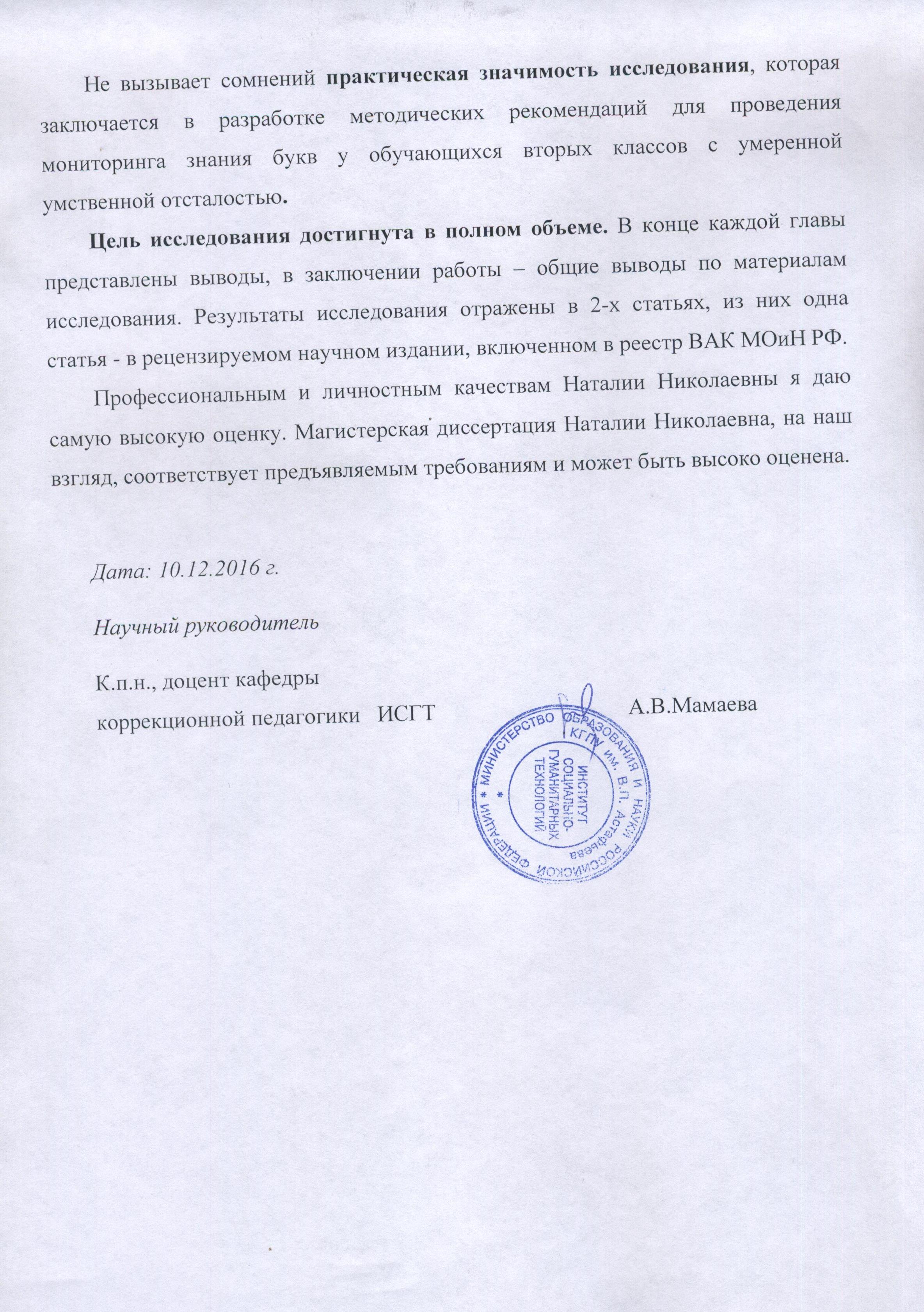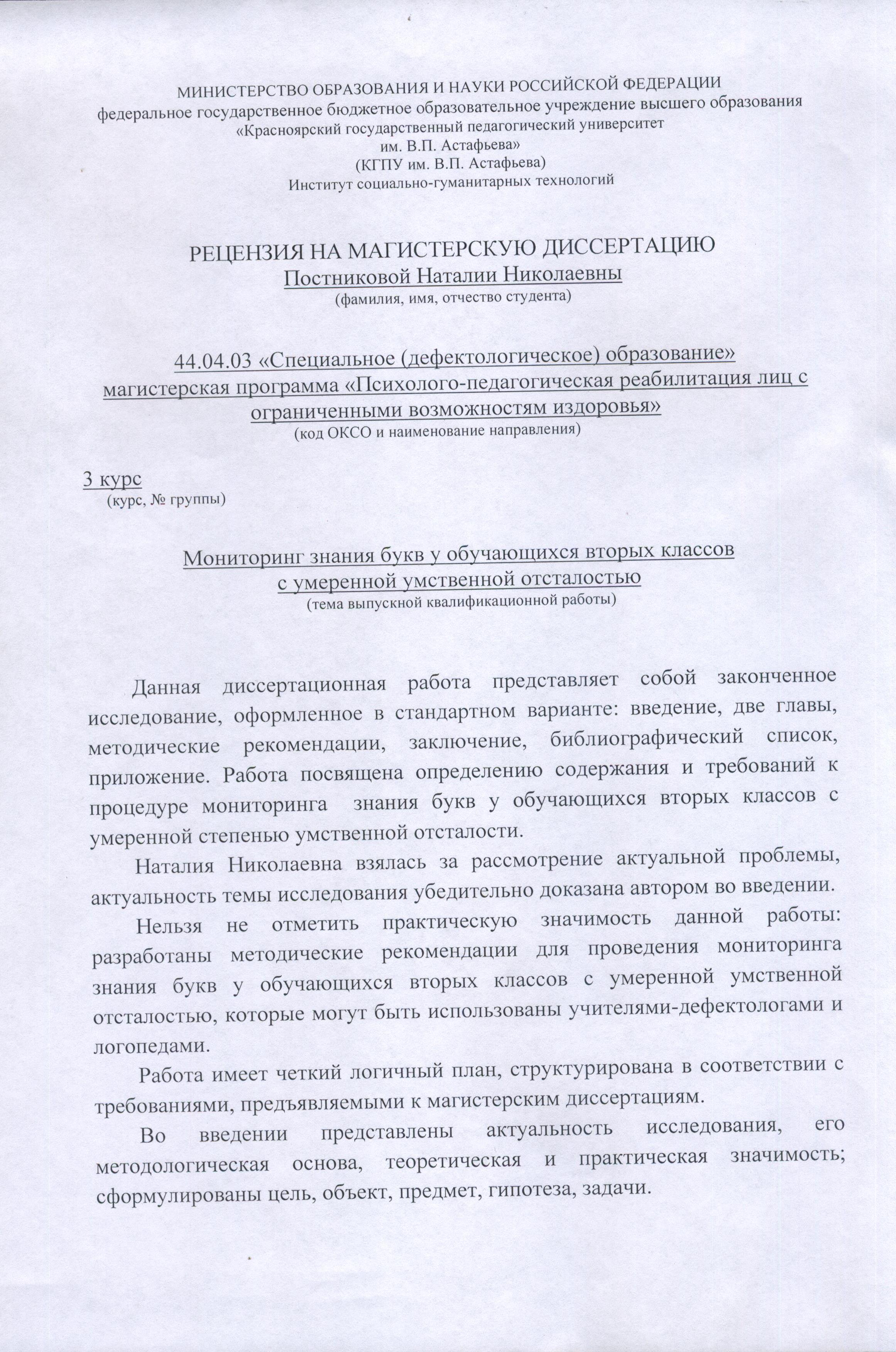 Магистерская диссертация "Мониторинг знания букв у обучающихся вторых классов с умеренной умственной отсталостью"