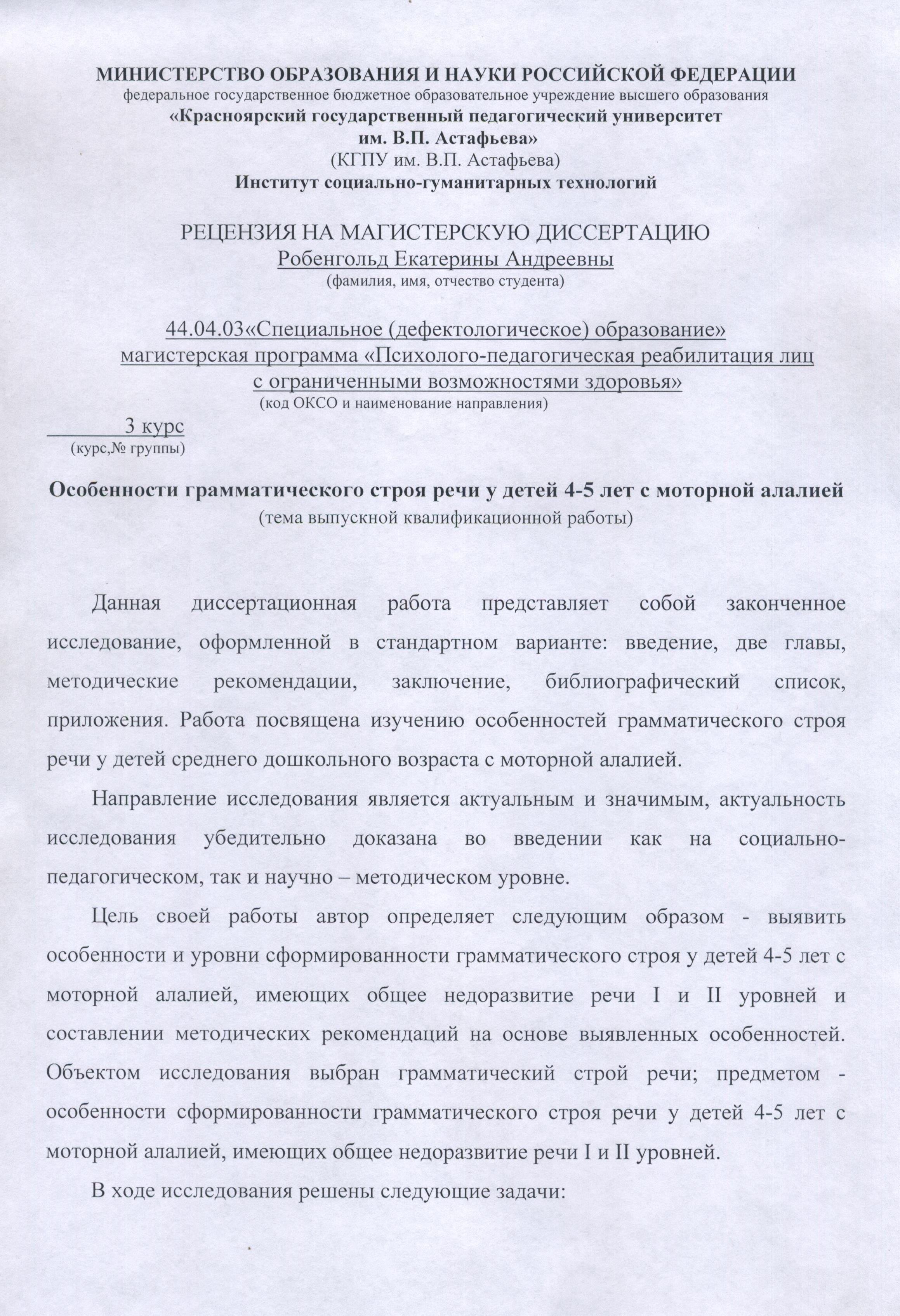 Магистерскаяч диссертация "Особенности грамматического строя речи у детей 4-5 лет с моторной алалией"