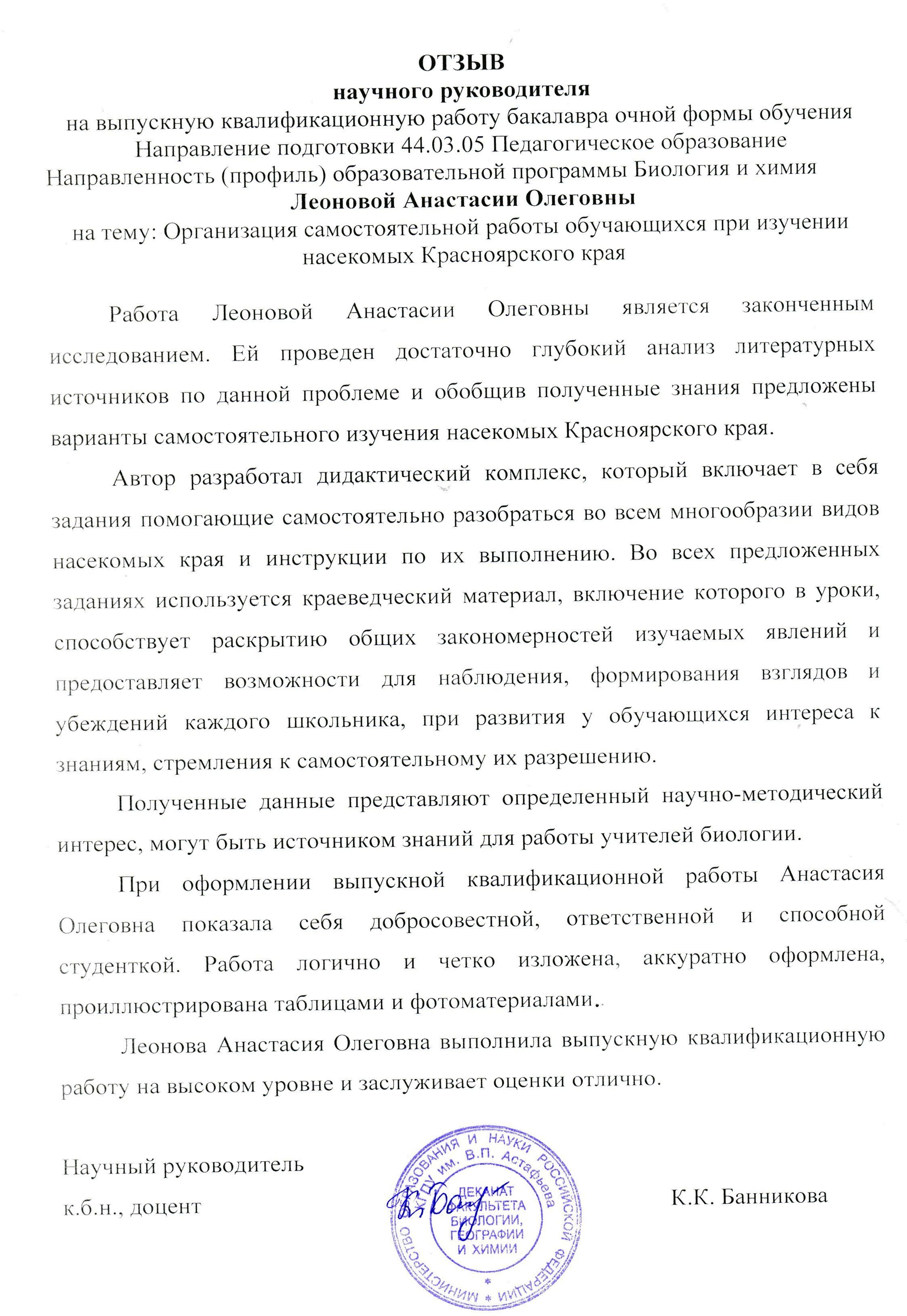 ОРГАНИЗАЦИЯ САМОСТОЯТЕЛЬНОЙ РАБОТЫ ОБУЧАЮЩИХСЯ ПРИ ИЗУЧЕНИИ НАСЕКОМЫХ КРАСНОЯРСКОГО КРАЯ