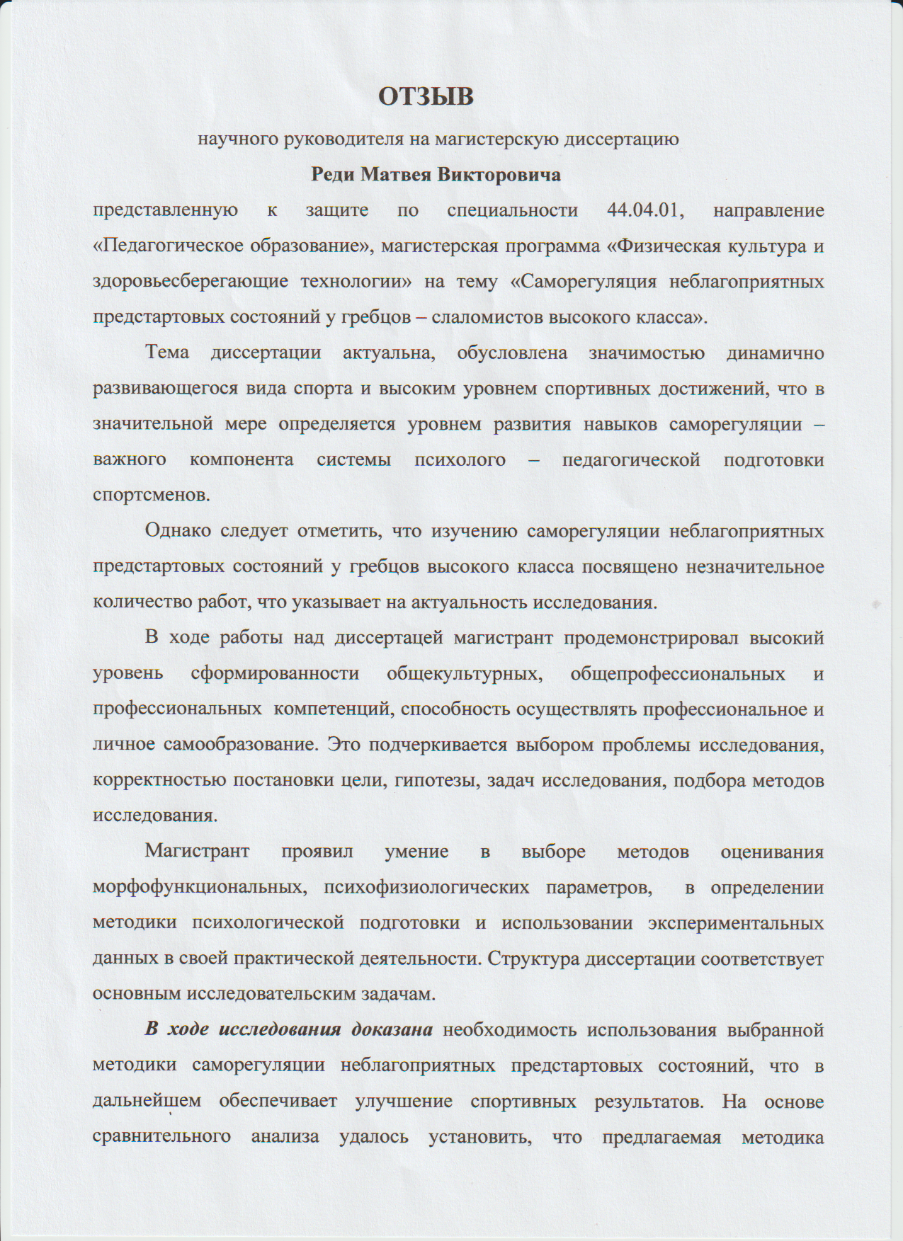 Саморегуляция неблогоприятных предстартовых состояний у гребцов-слаломистов высокого класа