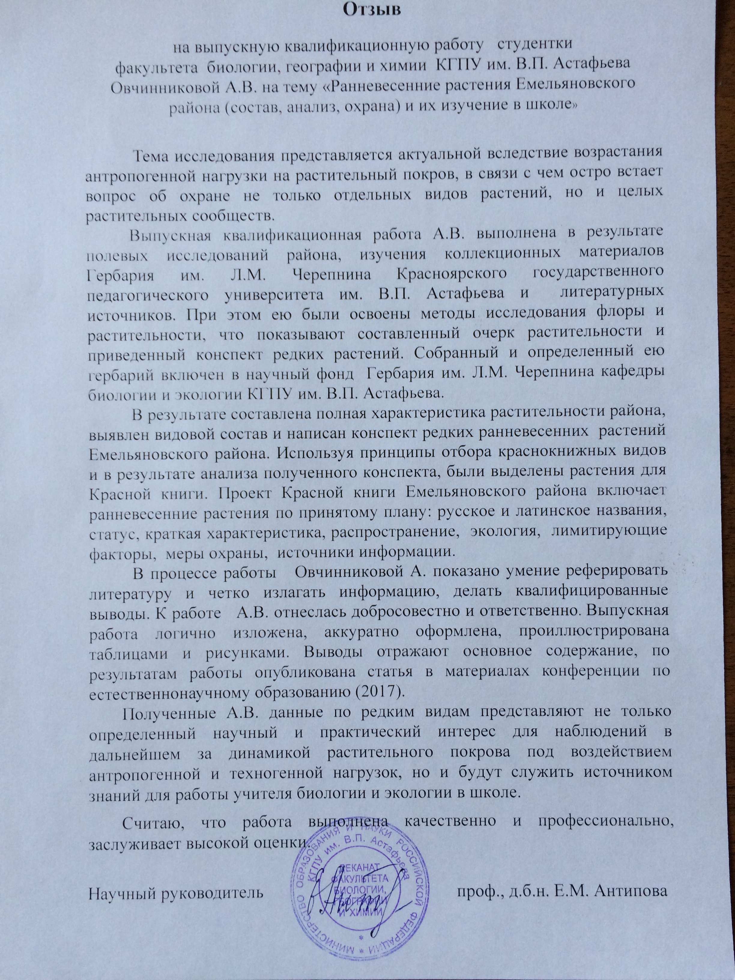 Ранневесенние растения Емельяновского района (состав, анализ, охрана) и их изучение в школе