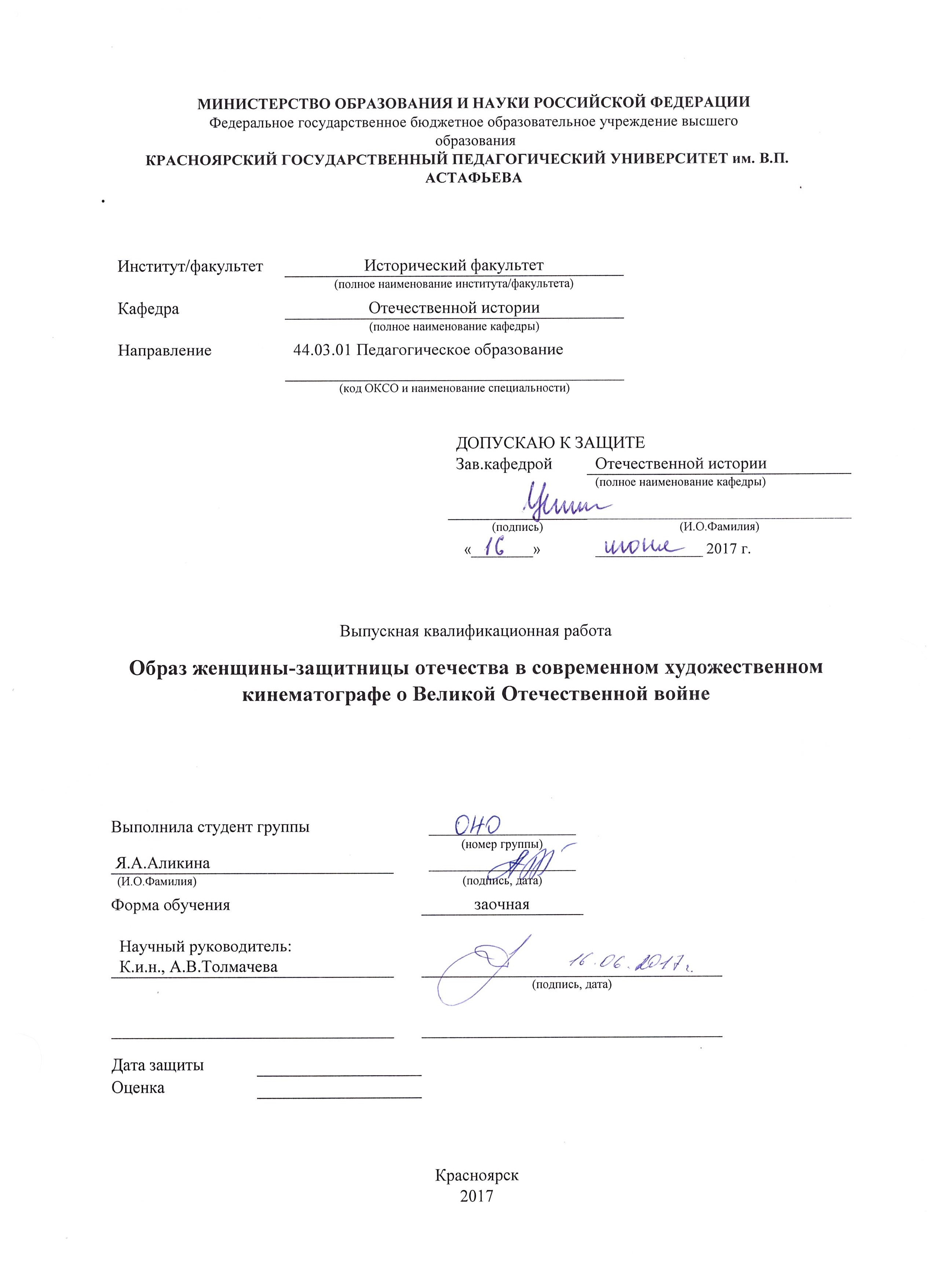 Образ женщины-защитницы отечества в современном художественном кинематографе о Великой Отечественной войне
