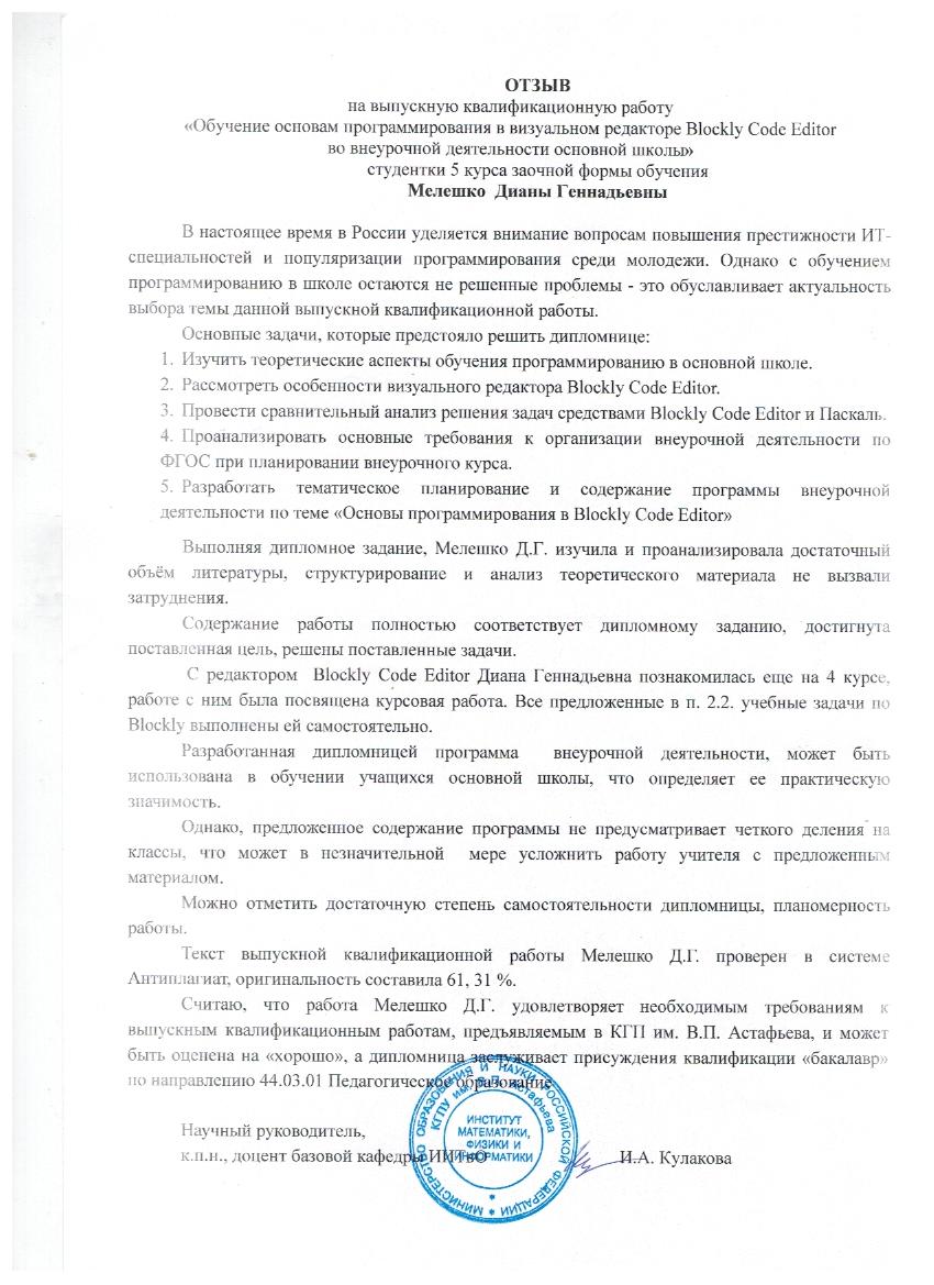 Обучение основам программирования в визуальном редакторе Blockly Code Editor во внеурочной деятельности основной школы