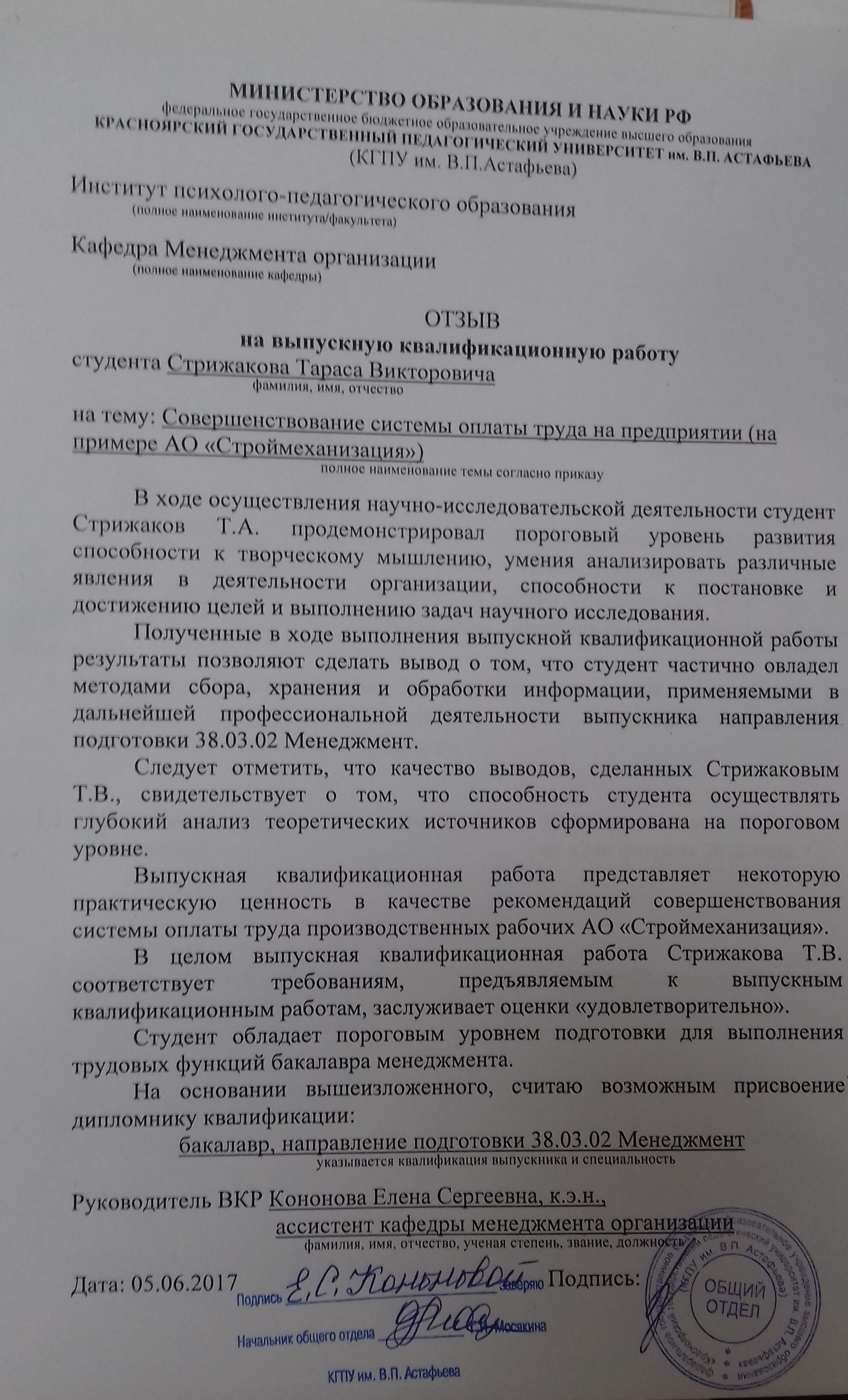 Совершенствование системы оплаты труда на предприятии (на примере АО «Строймеханизация»)