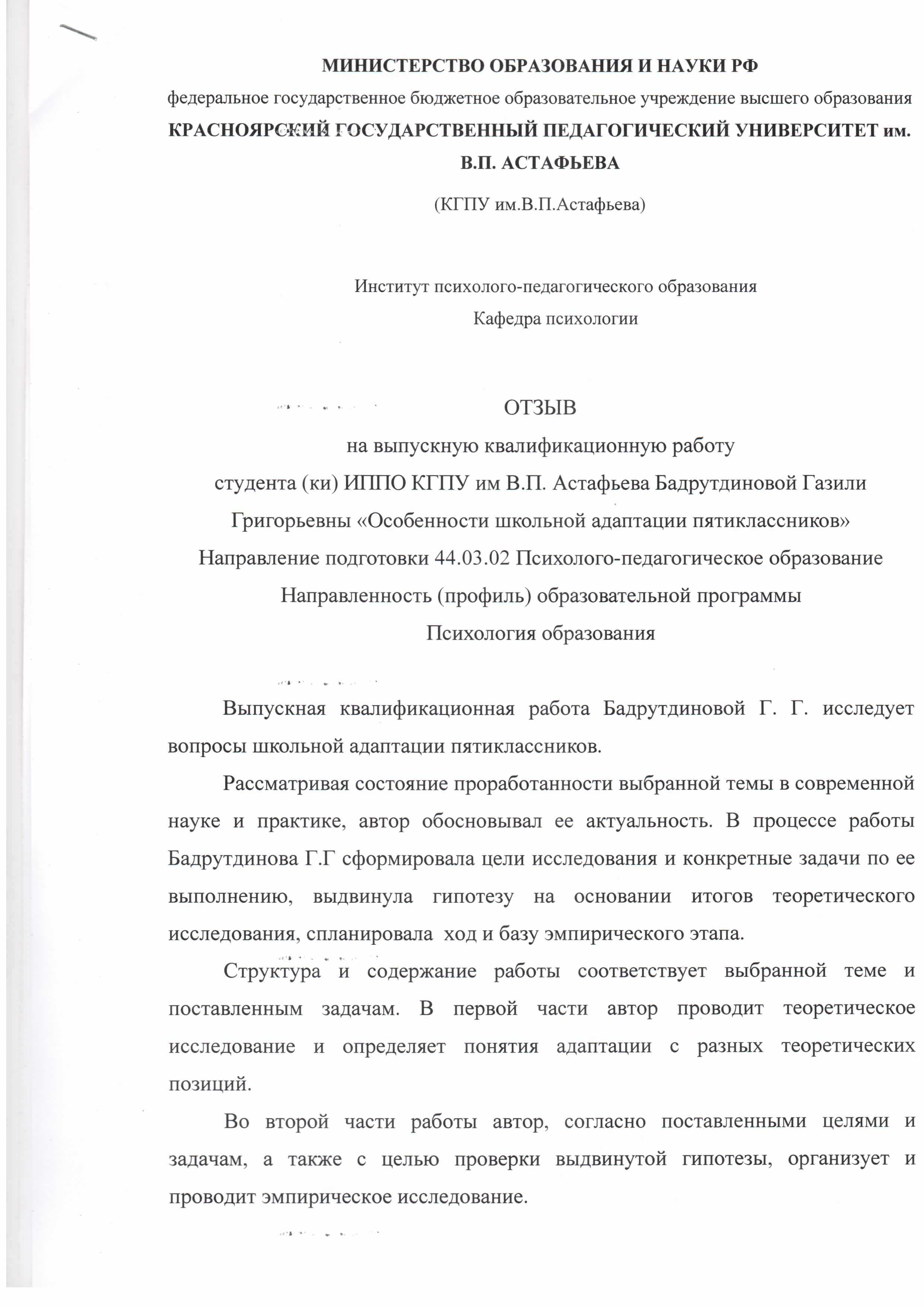 ОСОБЕННОСТИ ШКОЛЬНОЙ АДАПТАЦИИ ПЯТИКЛАССНИКОВ