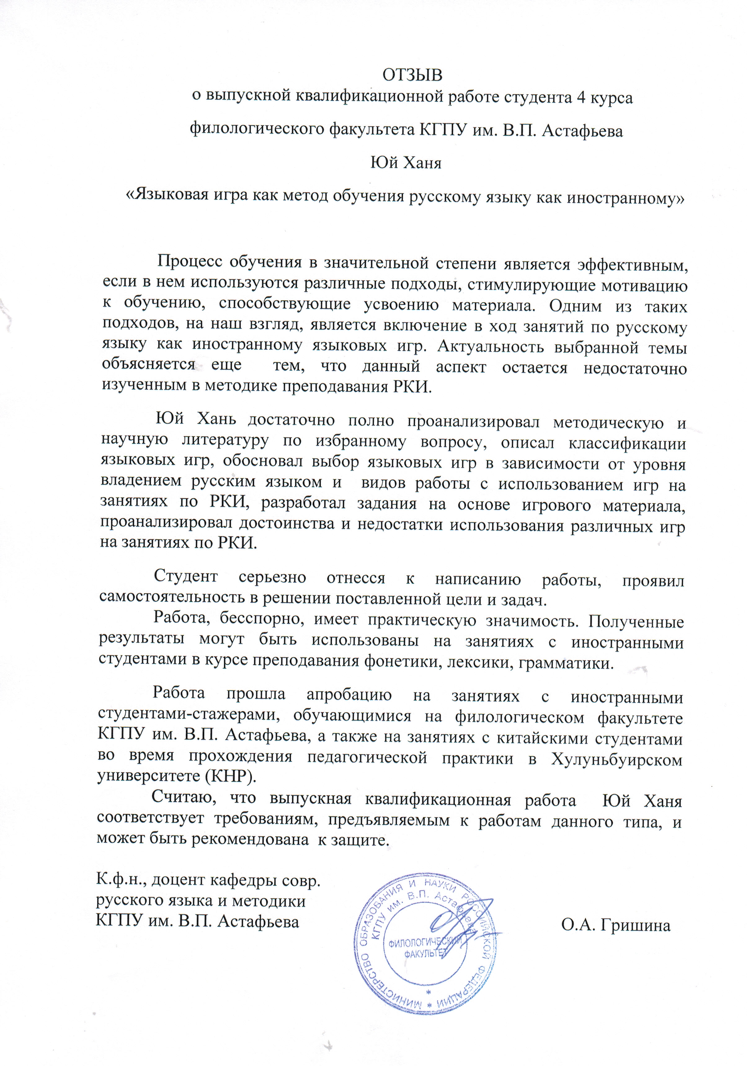 Юй Хань. Языковая игра как метод обучения русскому языку как иностранному