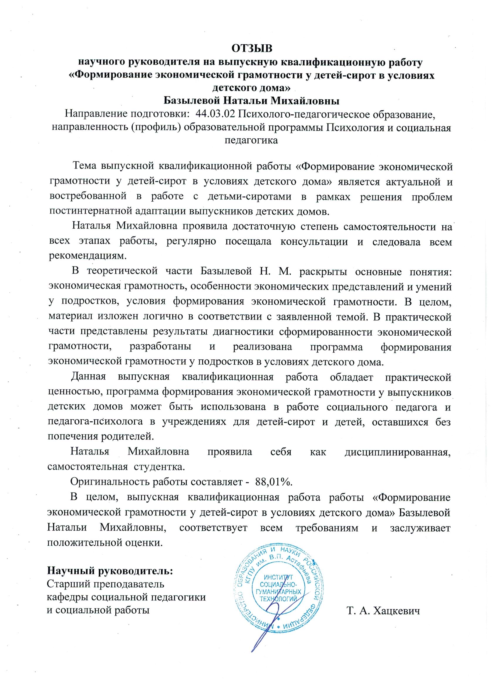 Формирование экономической грамотности детей-сирот в условиях детского дома