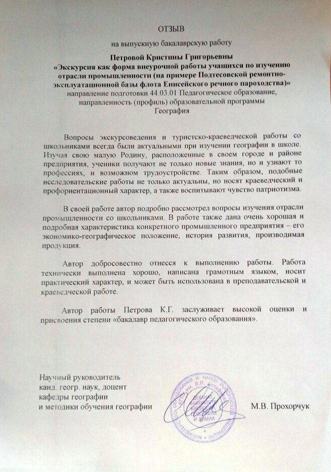 Экскурсия как форма внеурочной работы учащихся по изучению отрасли промышленности (на примере Подтесовской ремонтно-эксплуатационной базы флота Енисейского речного пароходства)